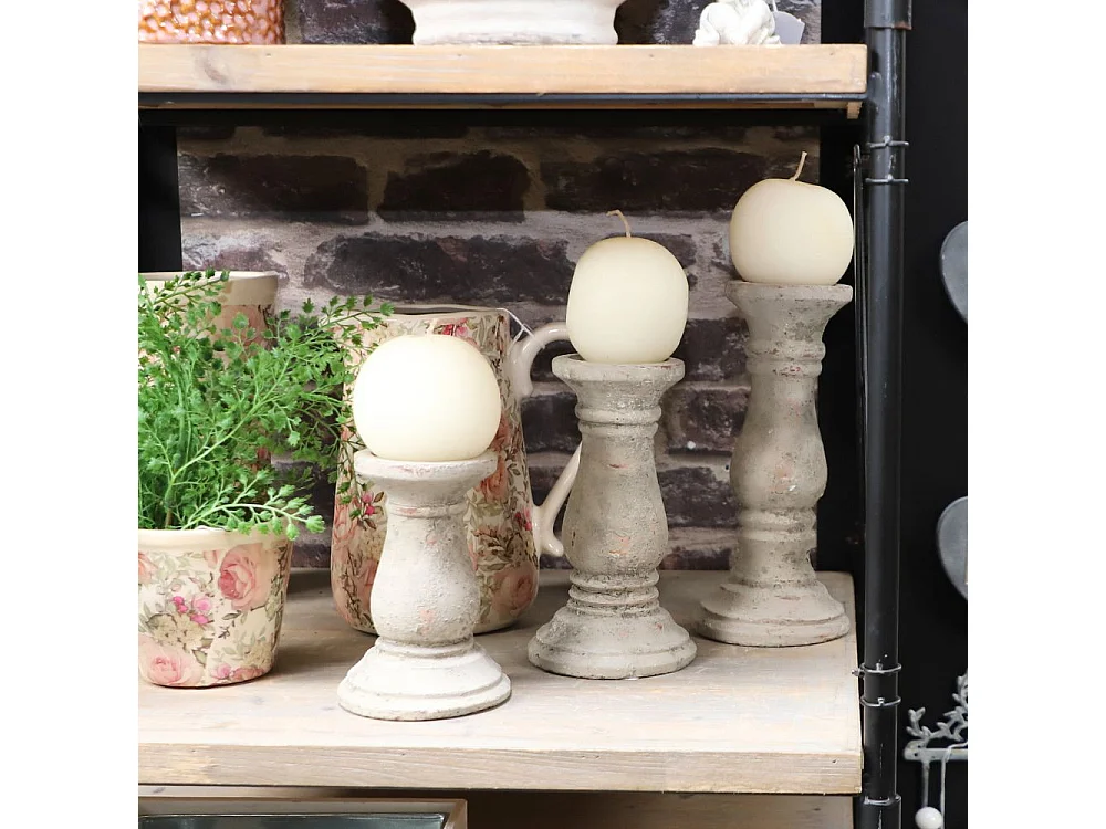 Bougeoir chandelier photophore ancien ciment vieilli gris marron 25cm