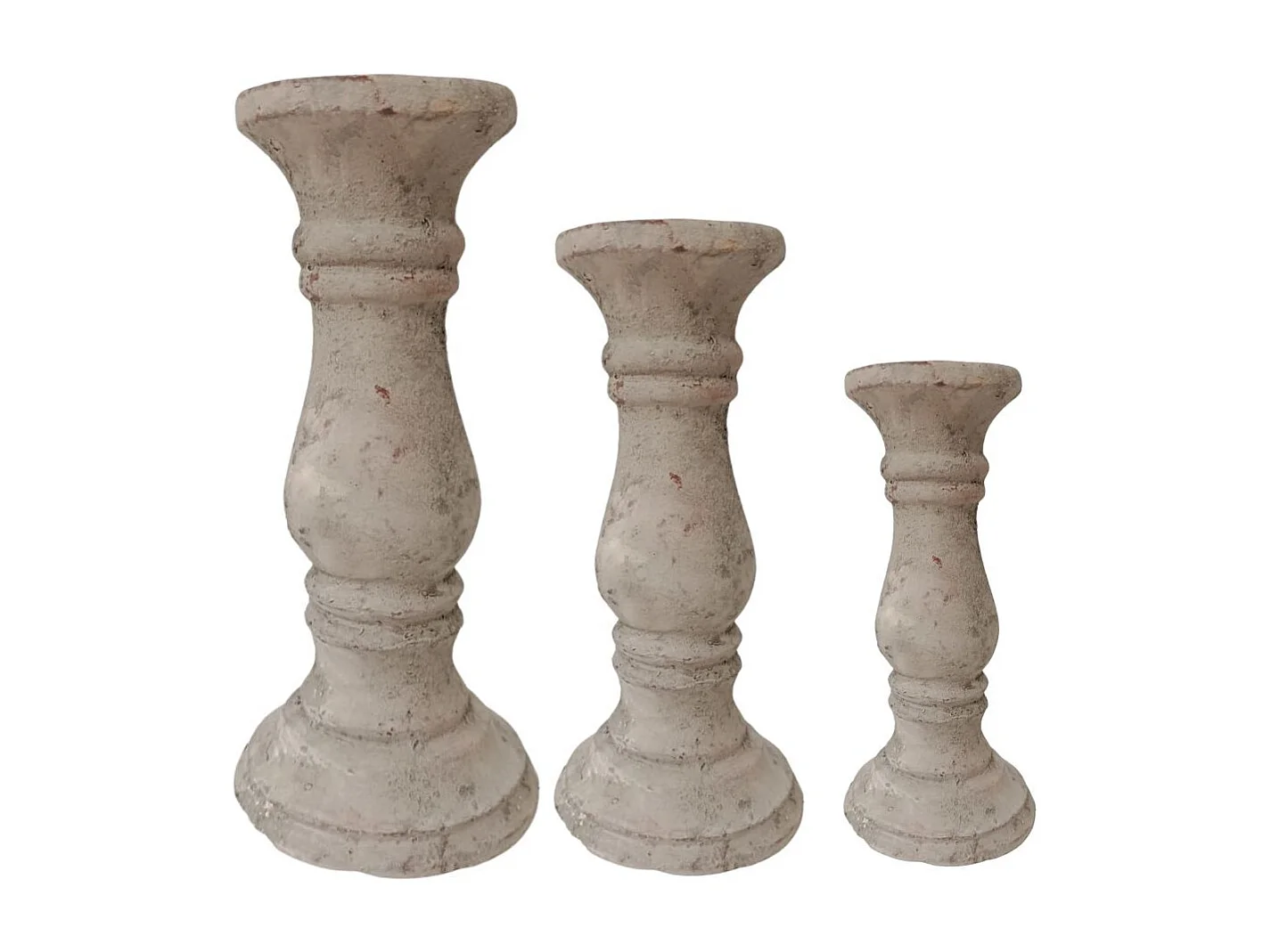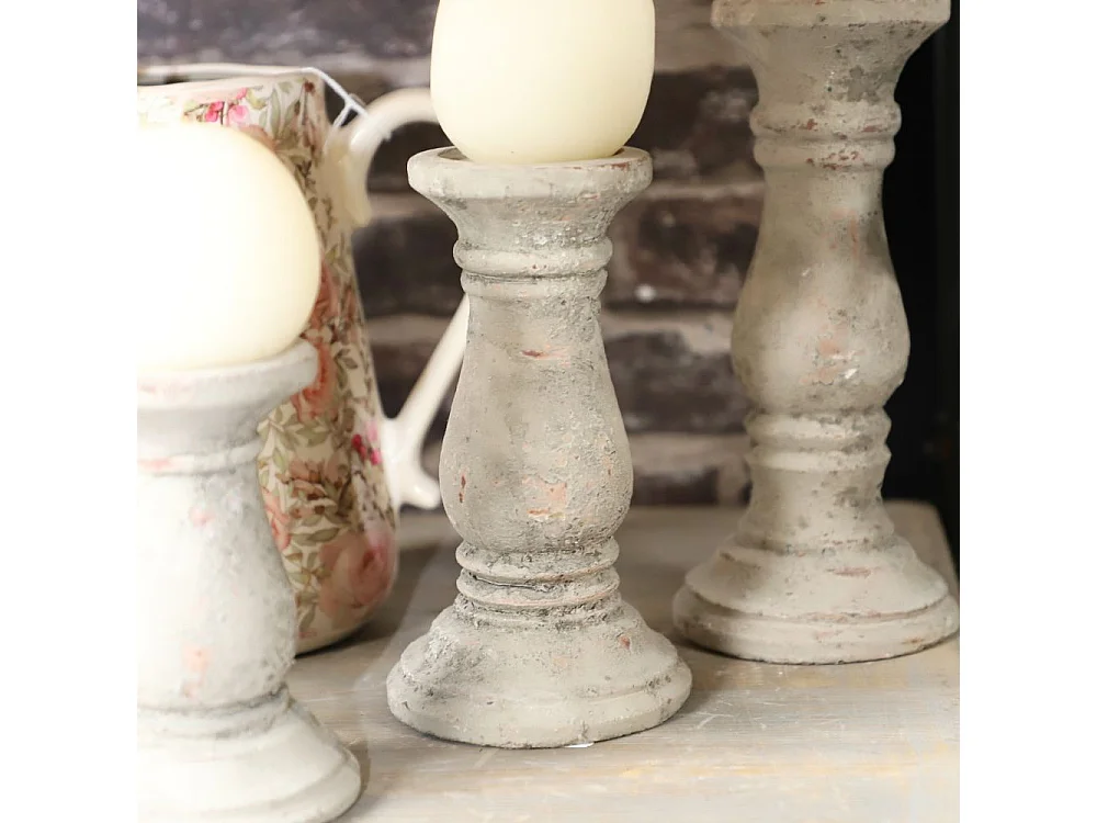 Bougeoir chandelier photophore ancien ciment vieilli gris marron 16cm