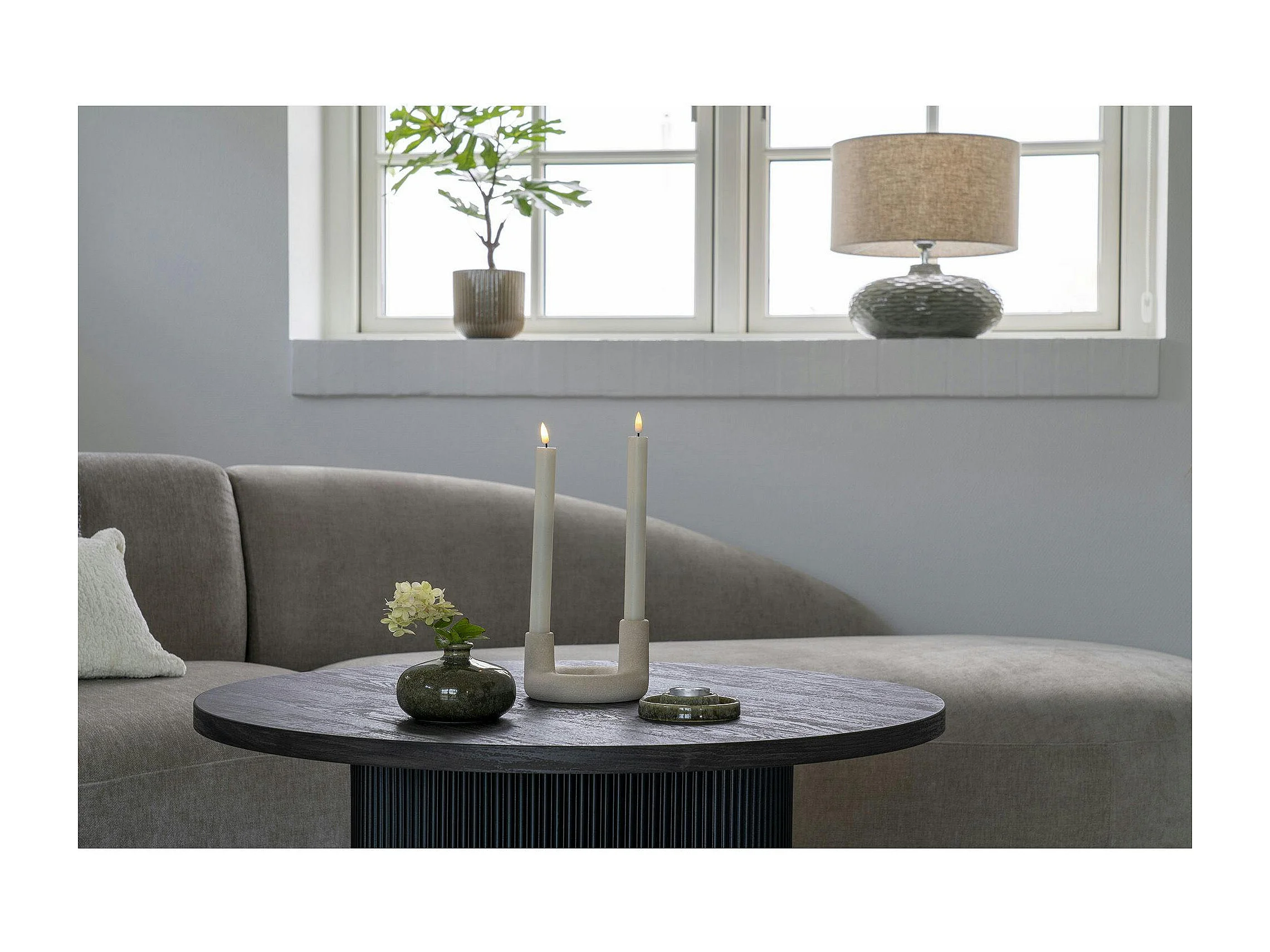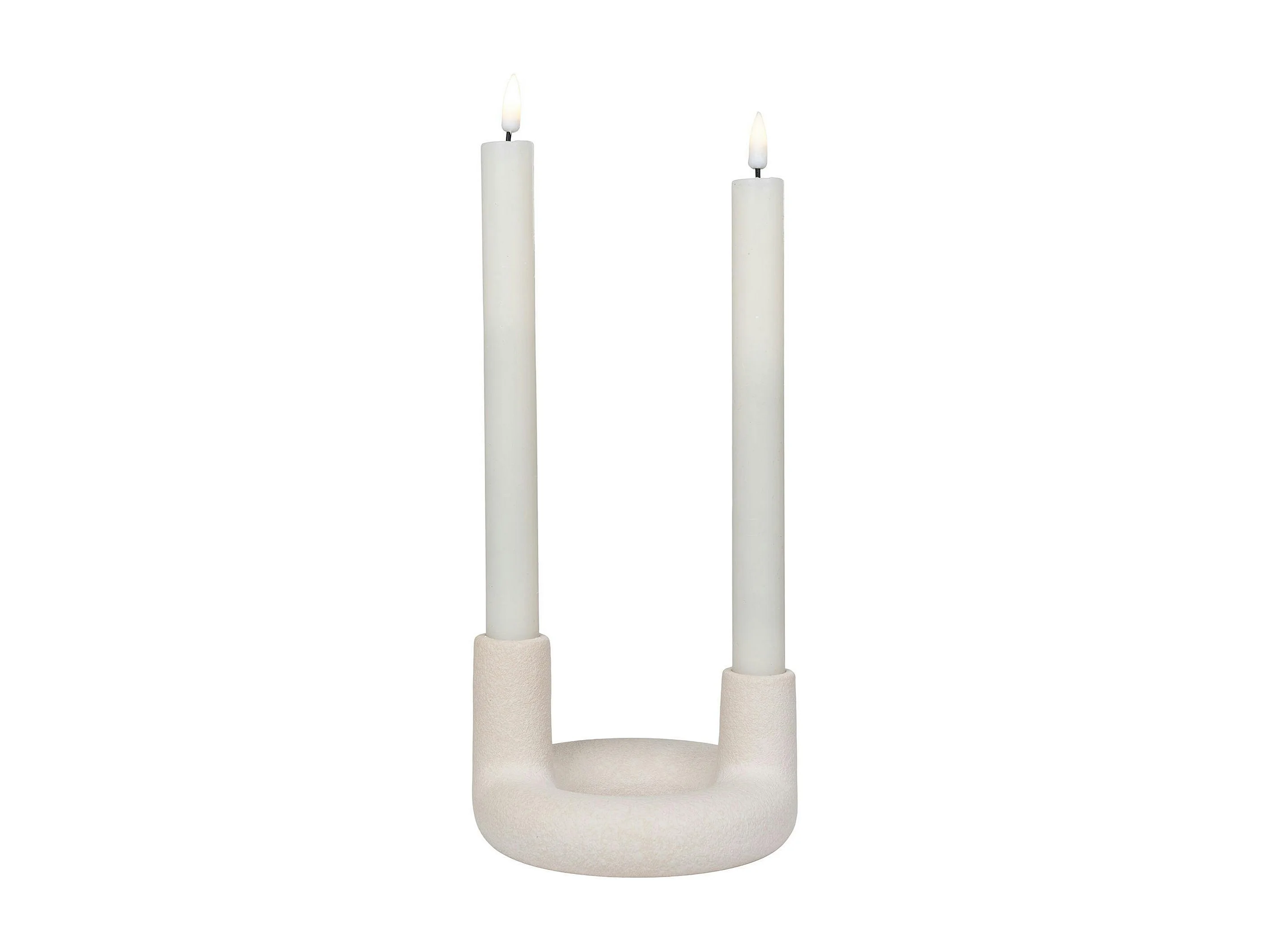 Bougeoir design en U pour 2 bougies - finition céramique mate beige