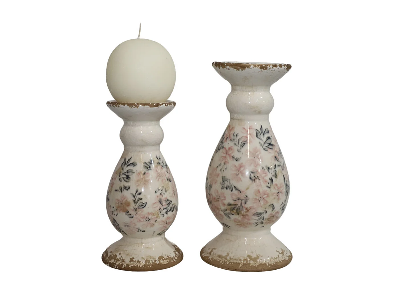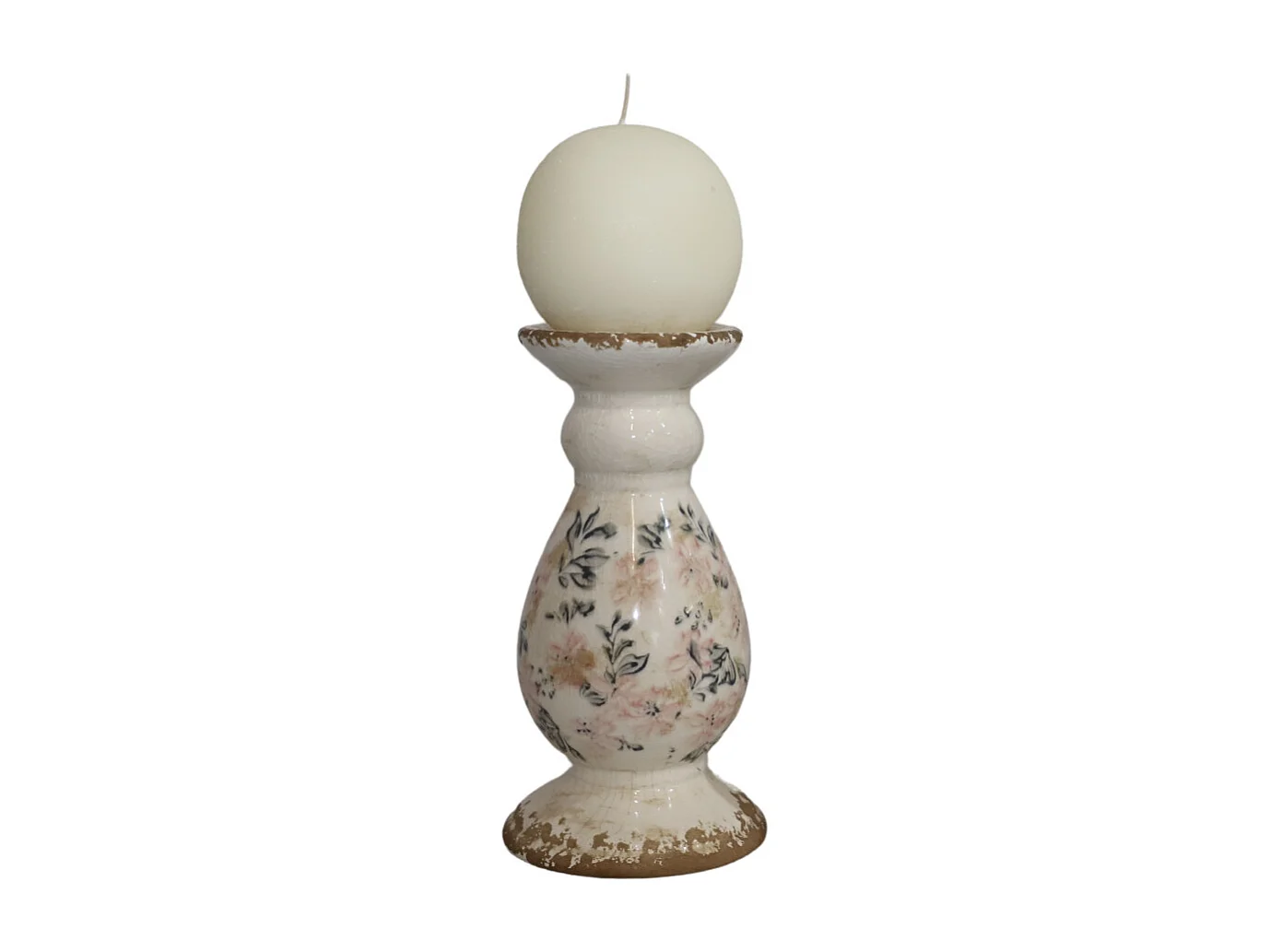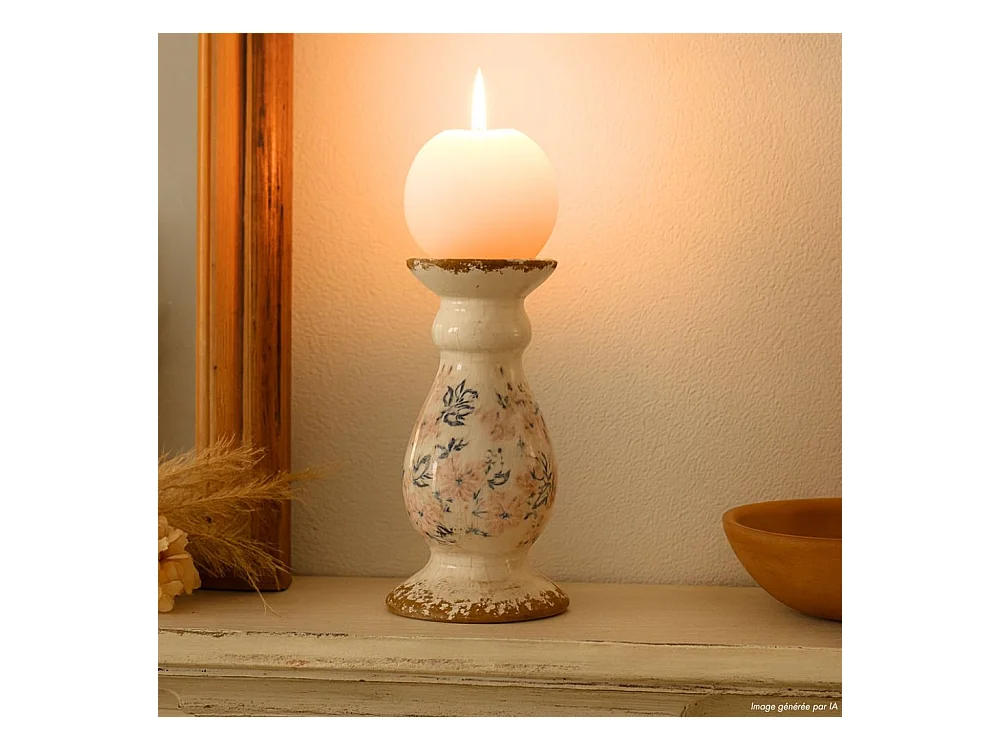 Bougeoir en céramique émaillée "Fleurs bleues et rose" Ø.12 x 25.5 cm