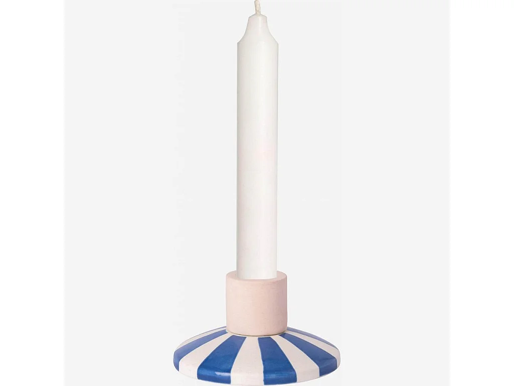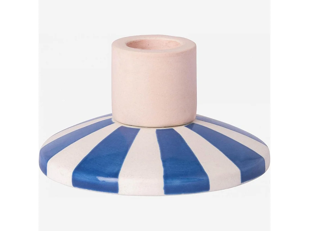 Habitat - Bougeoir en grès - 9 x 5 cm - Rayures bleues - Design by Chloé Le Cam - Ulo