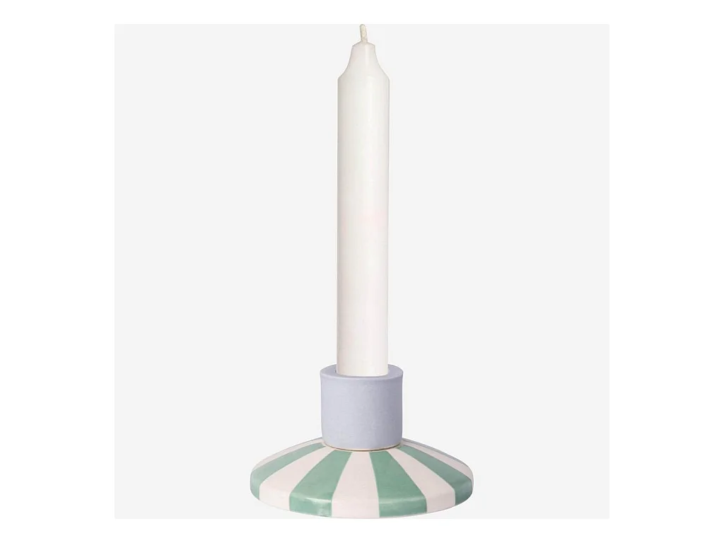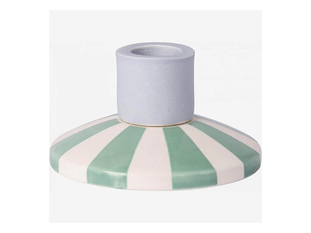 Habitat - Bougeoir en grès - 9 x 5 cm - Rayures vertes - Design by Chloé Le Cam - Ulo