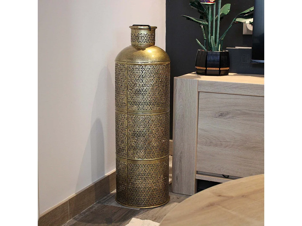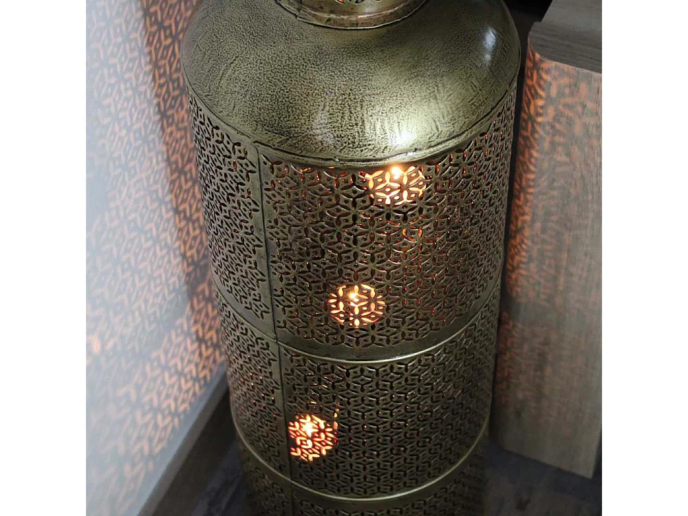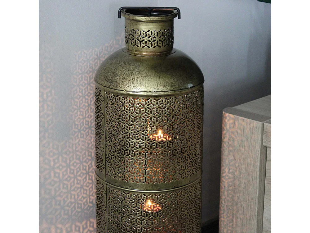 Lanterne en métal antique décor Cerf et Biche intérieur doré
