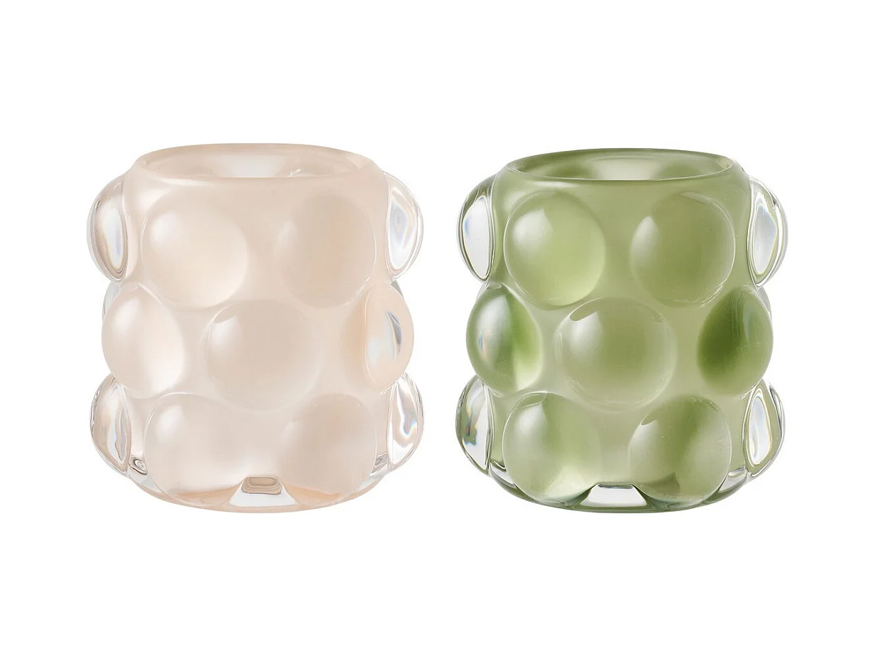 Set de 2 photophores en verre blanc 7x7x8 cm