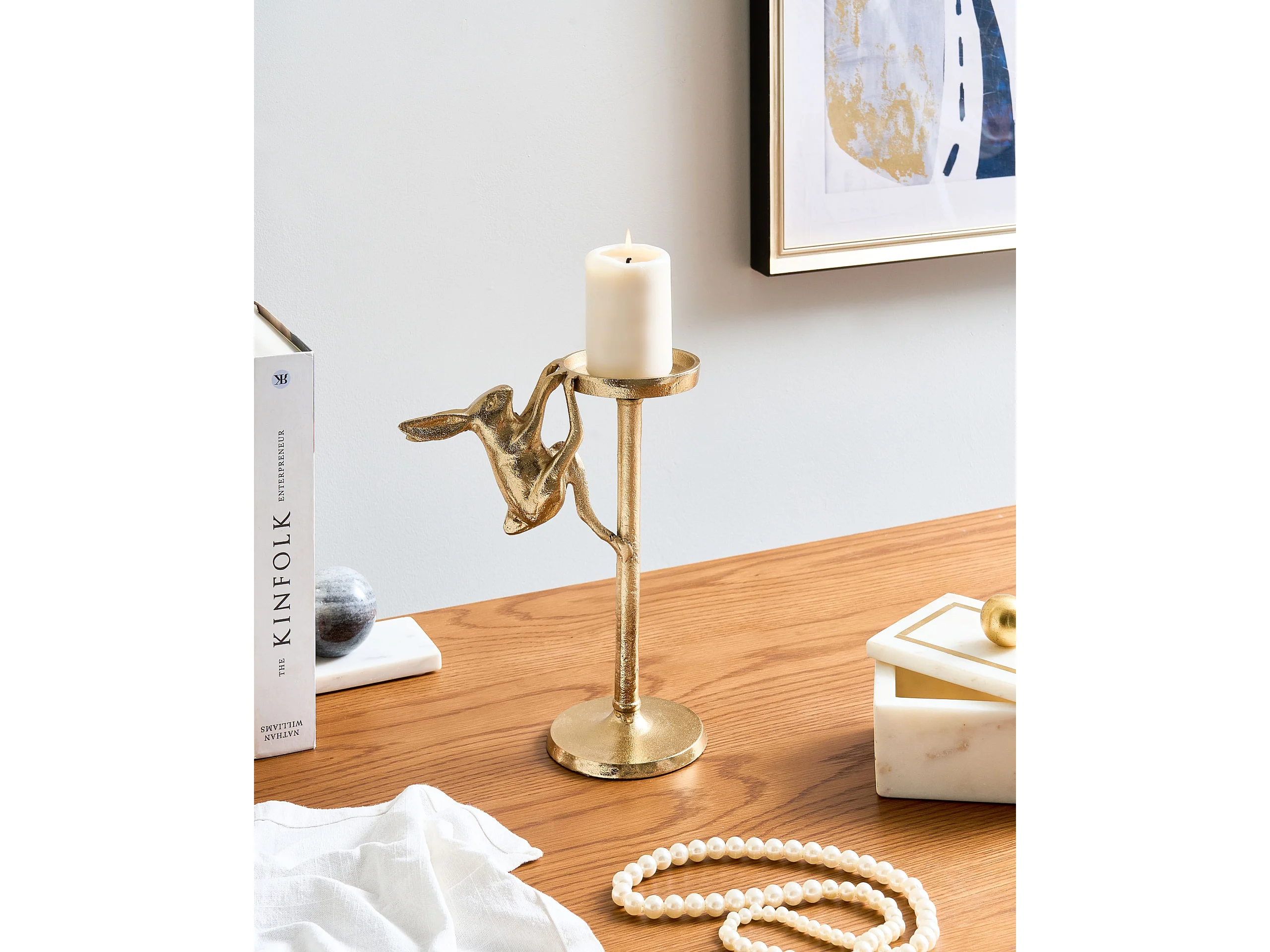 Bougeoir Chandelier en Métal Doré H 25.5 cm