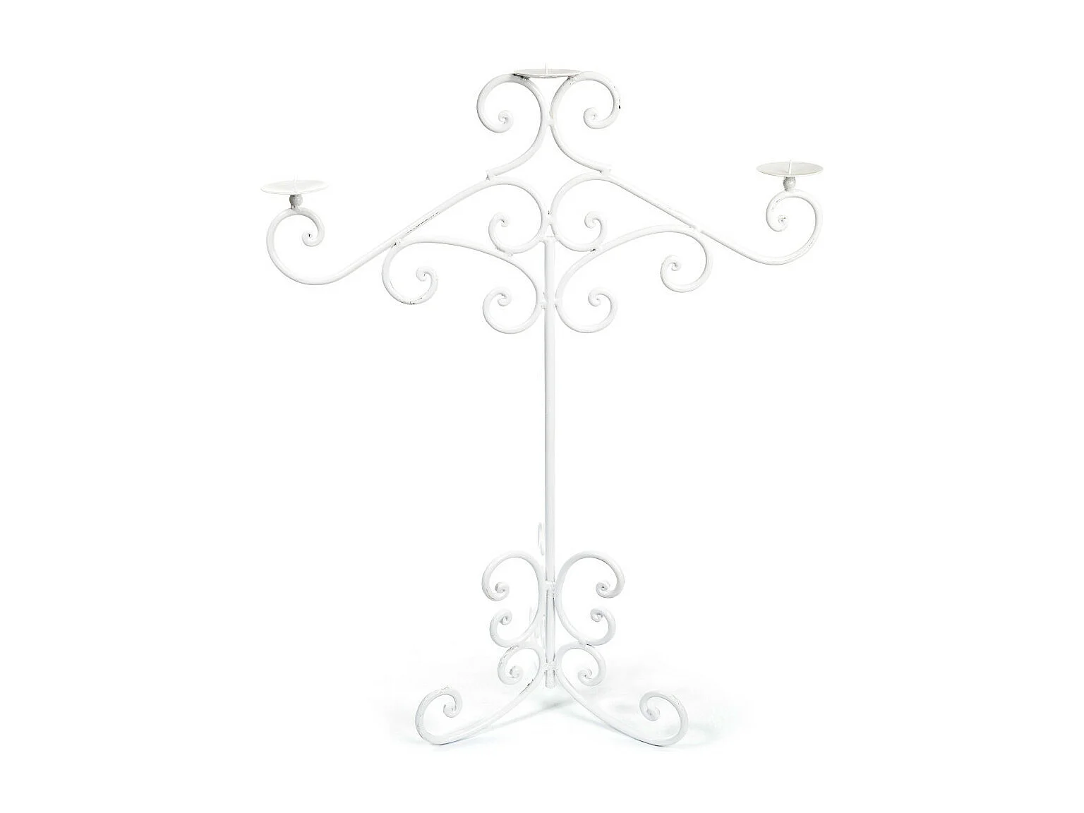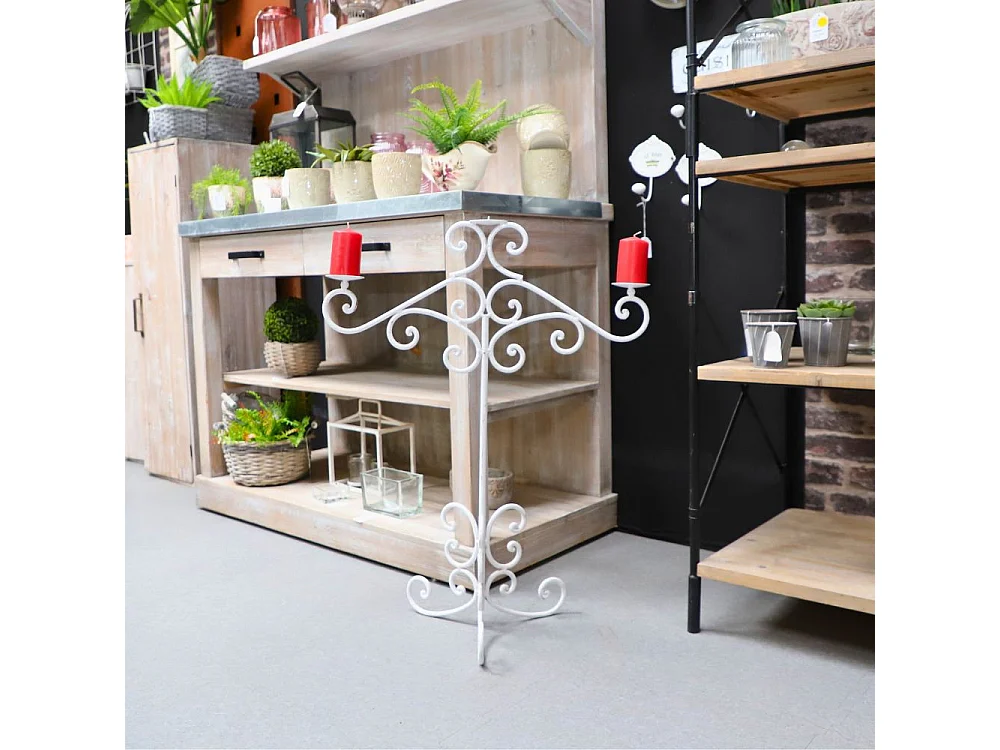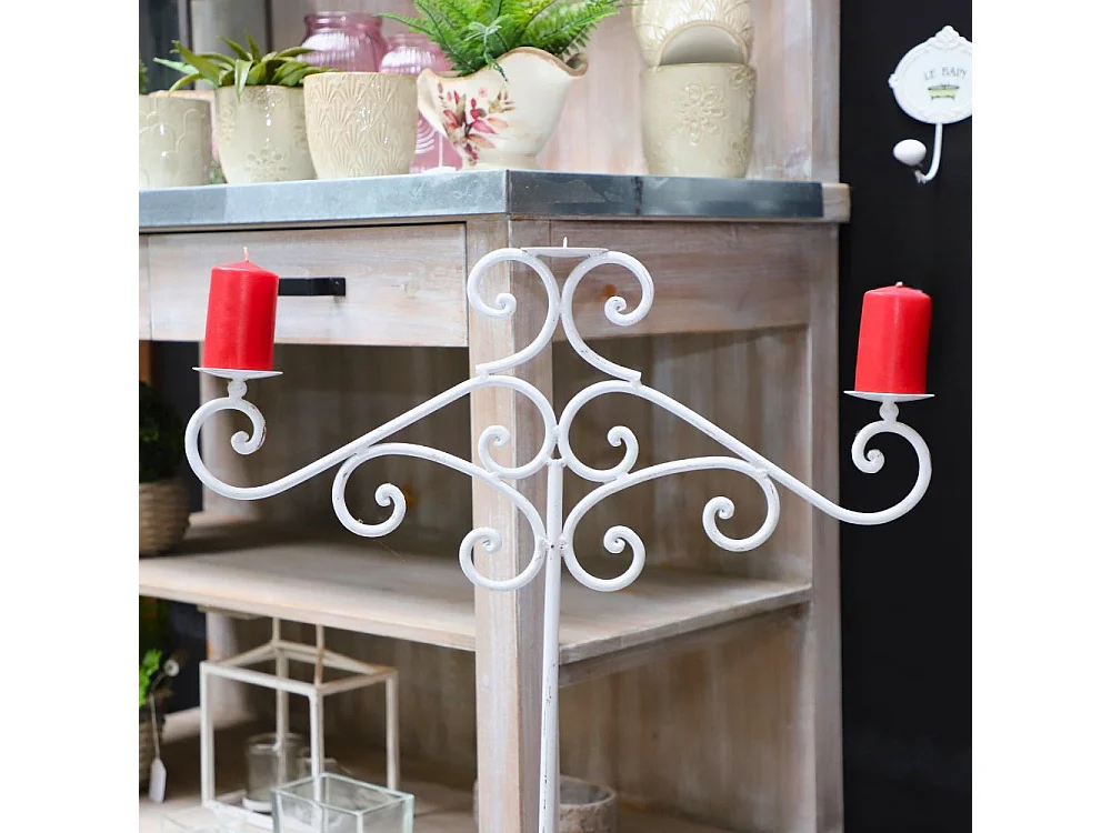 ~ Bougeoir sur pieds 3 bougies en métal blanc 62 x 87 cm