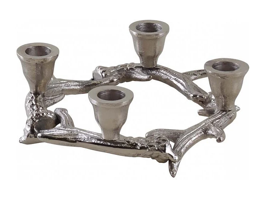 Bougeoir Chandelier 5 têtes en Métal Argent H 27 cm