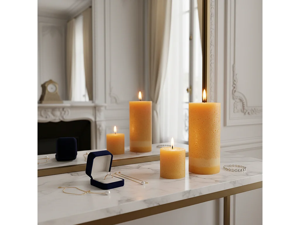 Bougie Pilier Ronde Déco "Rustique" 10cm Rose