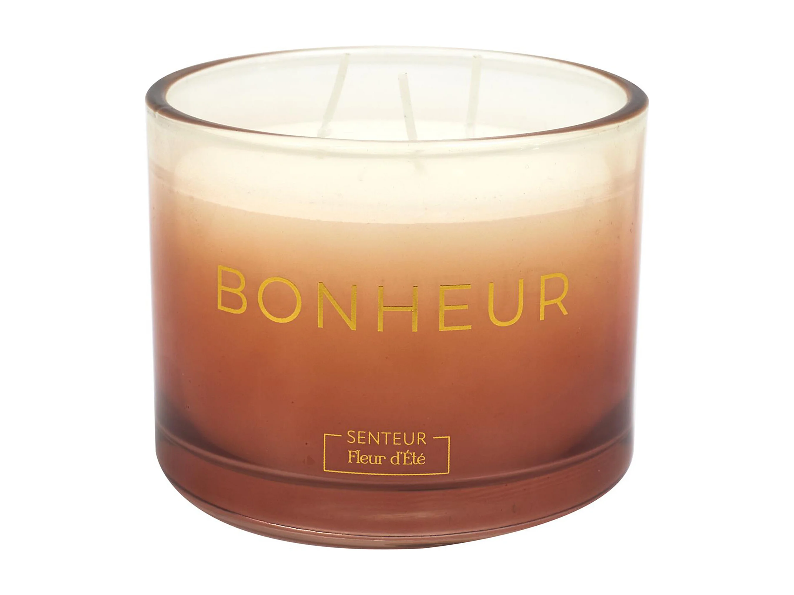 Bougie parfumée 3 mèches en coton AMOUR ET PASSION à la cire de parafine senteur fleur d'été orange