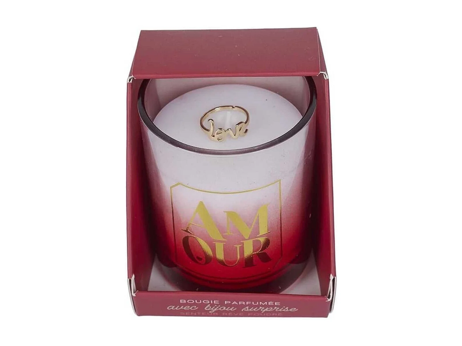 Bougie parfumée avec bague surprise (H8,4 cm) collection amour senteur rêve poudré