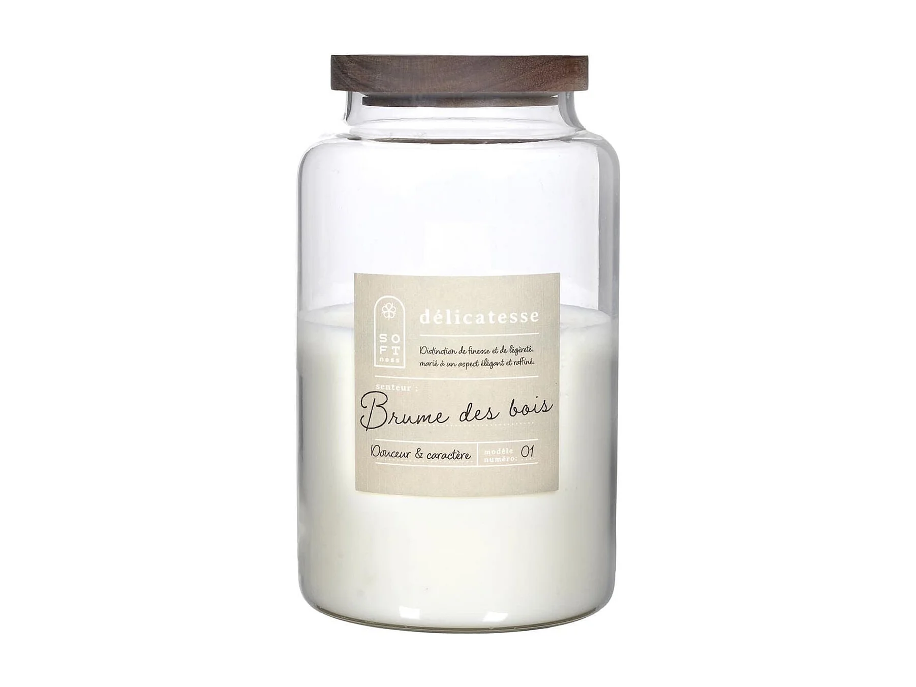 Bougie parfumée avec couvercle en acacia (H24 cm) senteur brume des bois