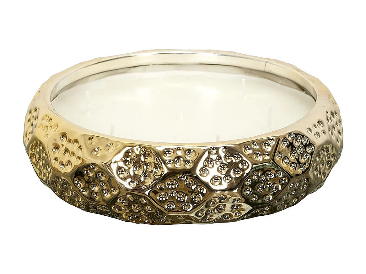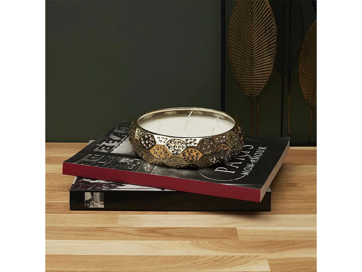 Bougie Parfumée en Céramique Dorée 7 Mèches Senteur Ambre Ø20cm - PONS