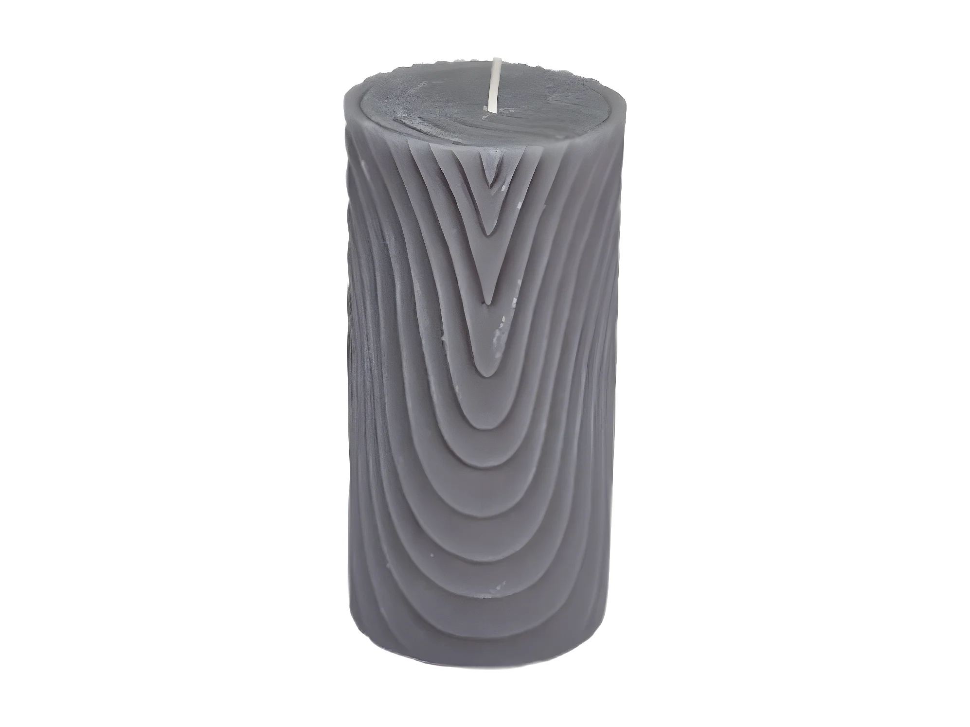 Bougie Pilier Déco Embossée "Santan" 14cm Gris