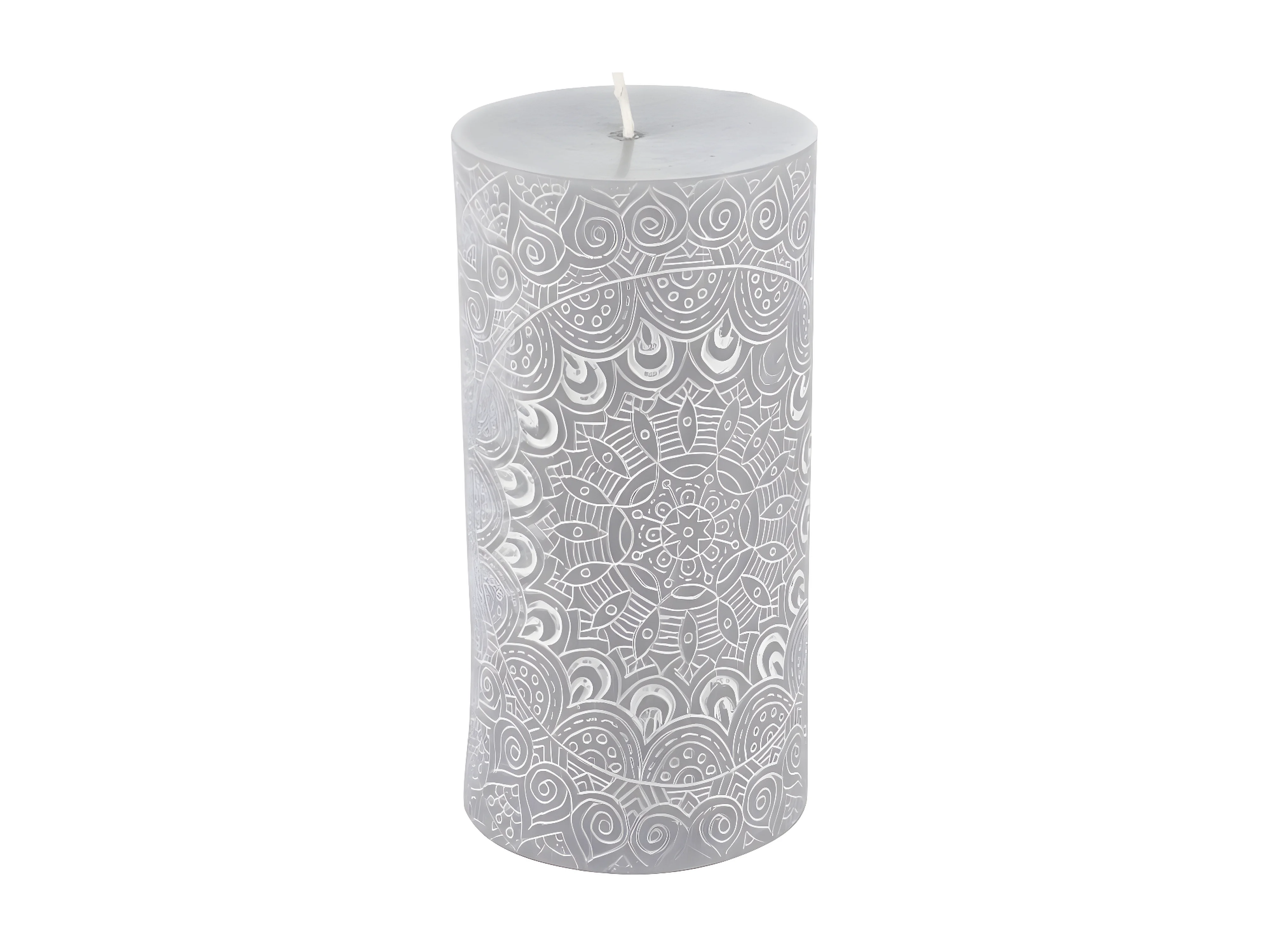 Bougie Pilier Mandala "Graphic Ethnic" 10cm Gris Clair