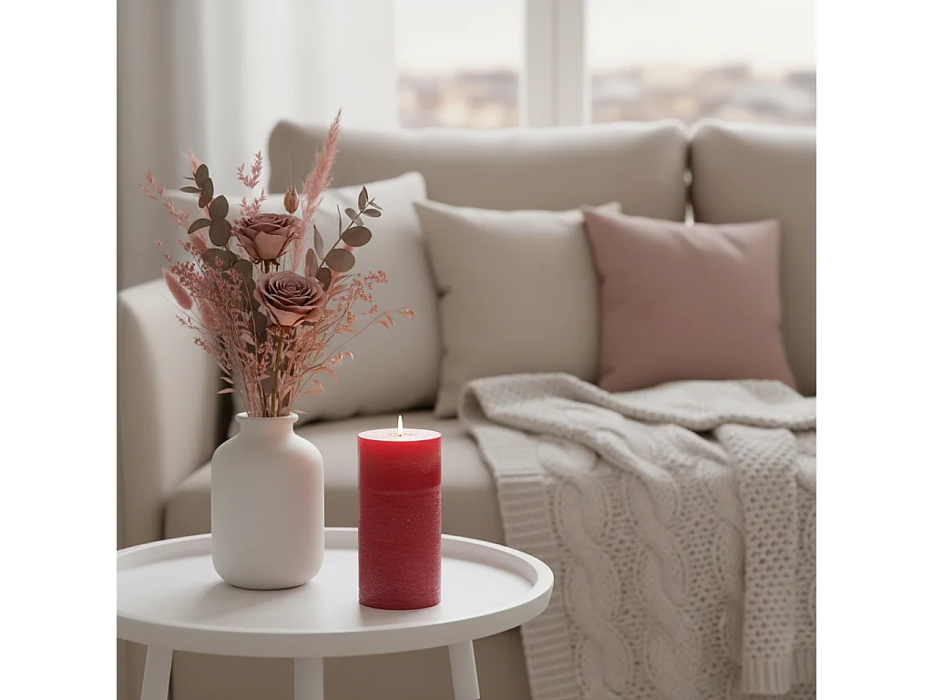 Bougie Cylindrique "Rustic" 14cm Rouge