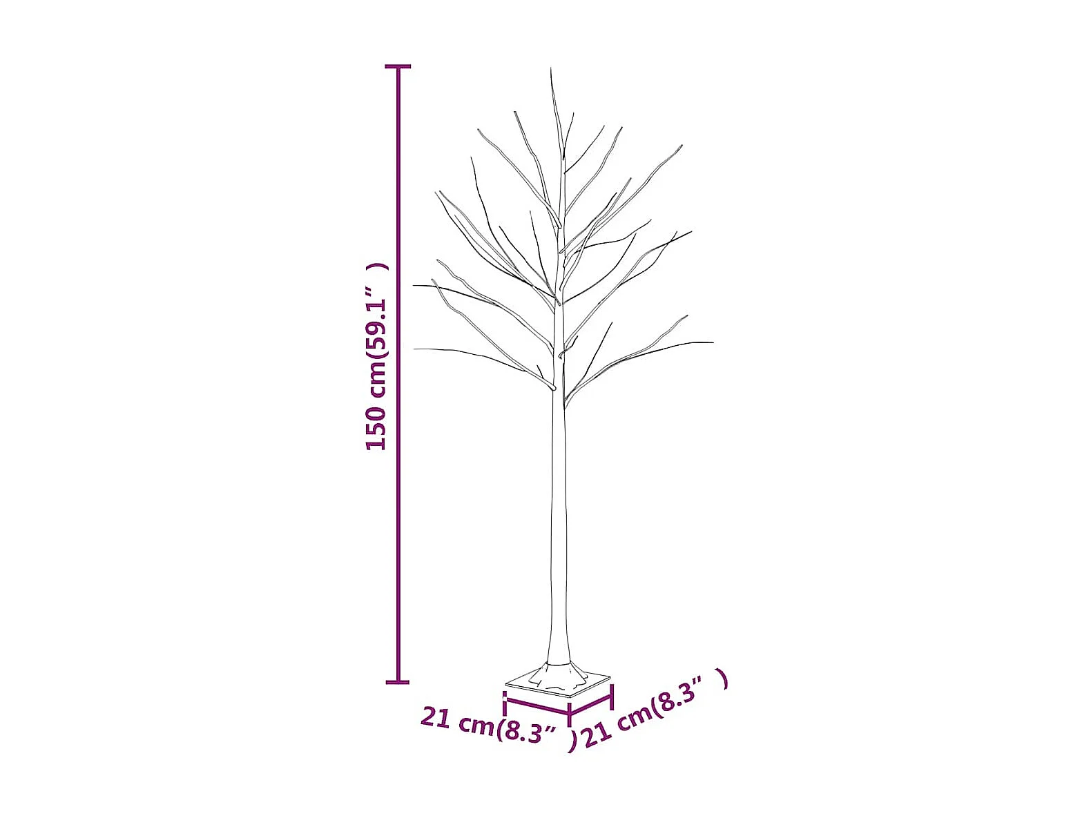 Bouleau blanc à LED 72 LED Blanc chaud 150 cm