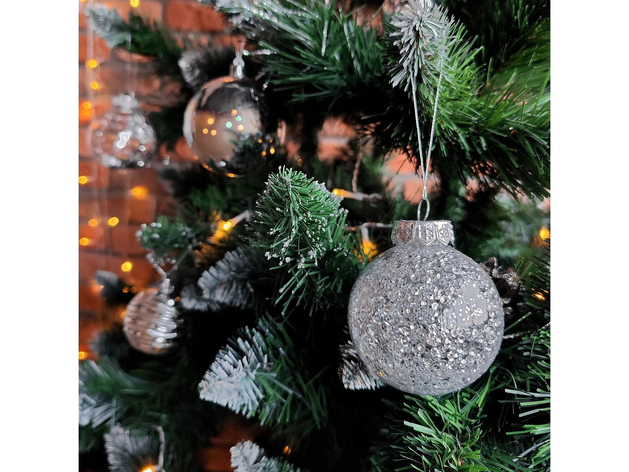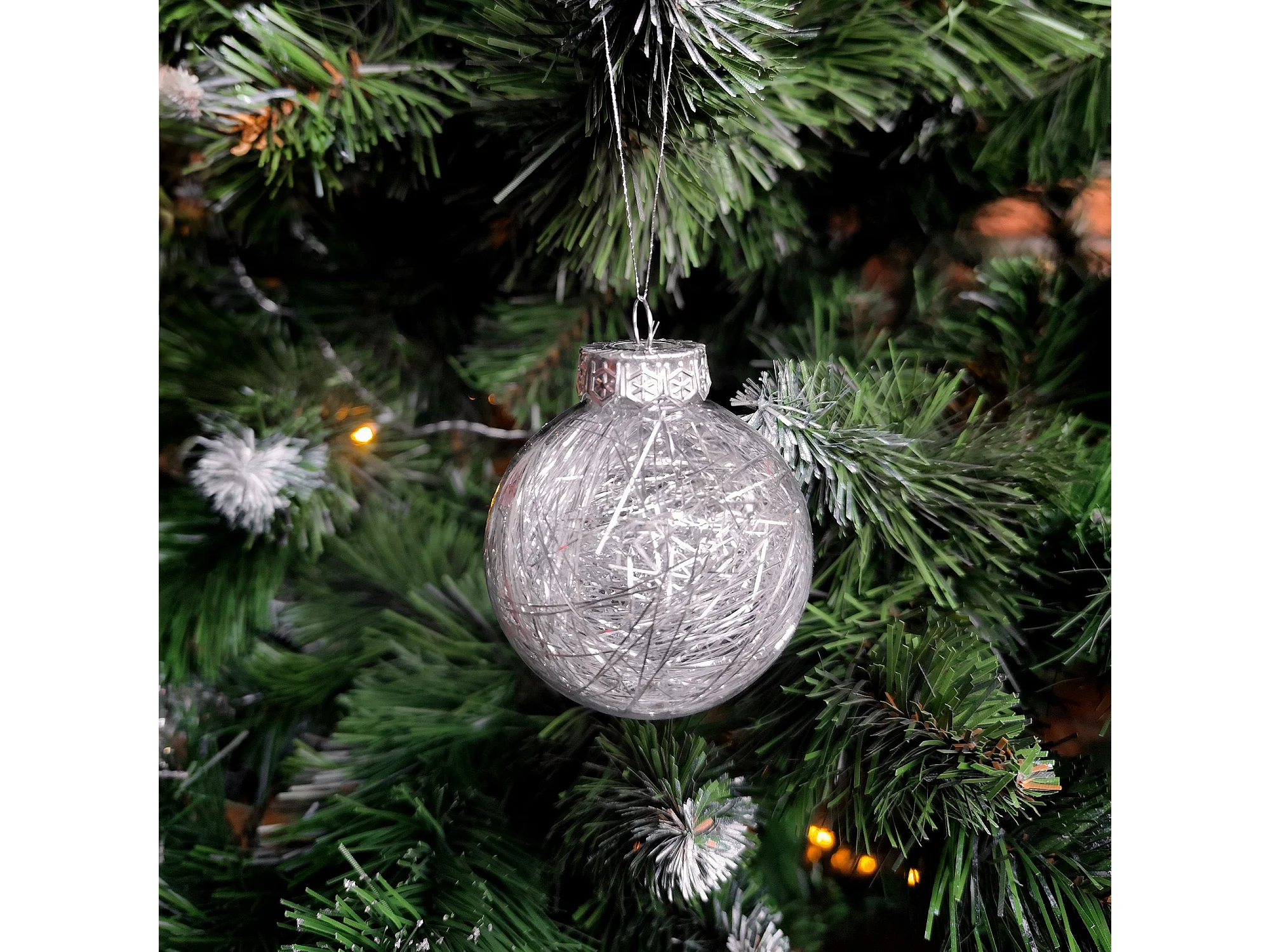 Déco de sapin Lot de 8 Boules de Noël D 7 cm - Argent et Blanc