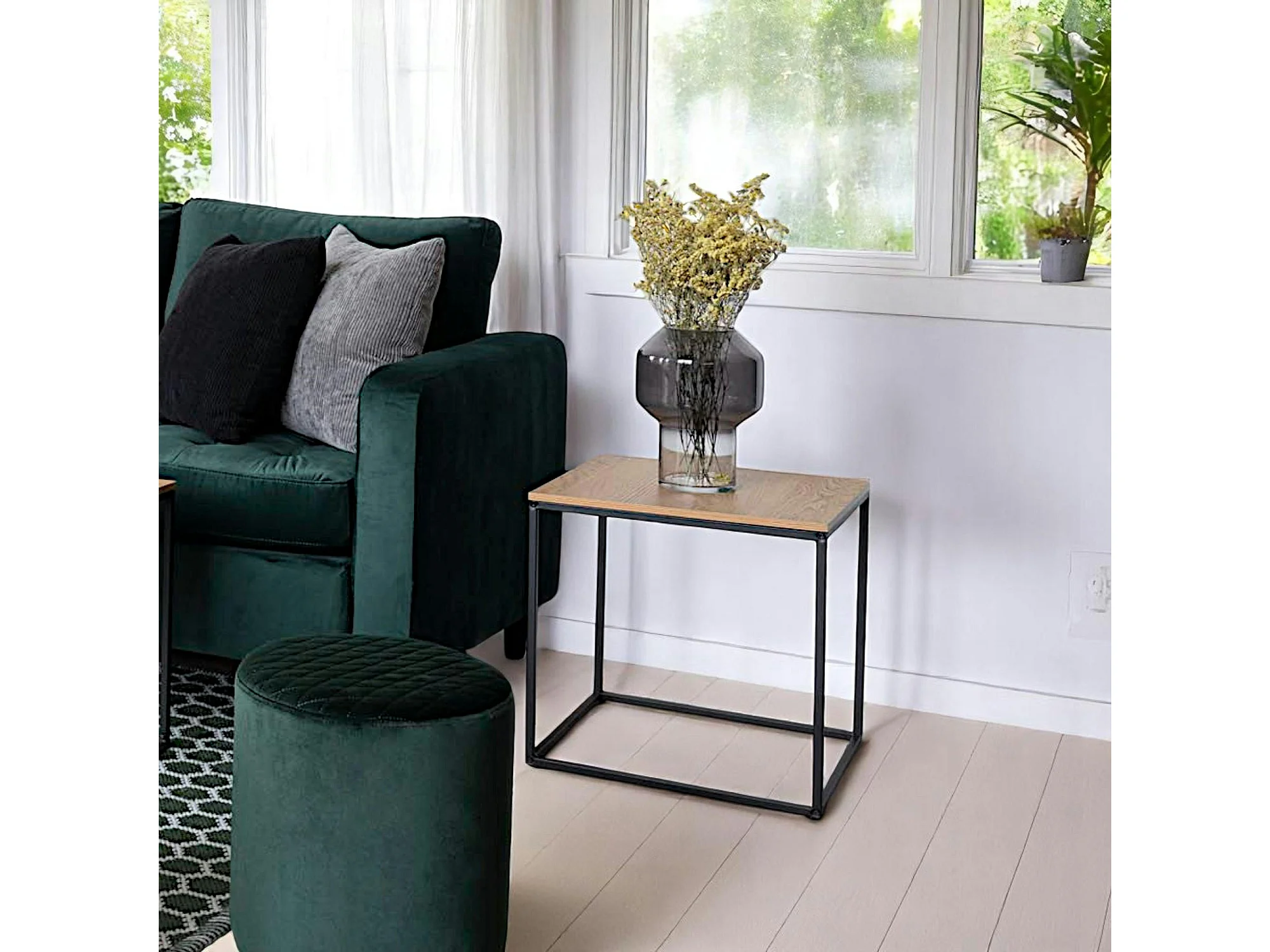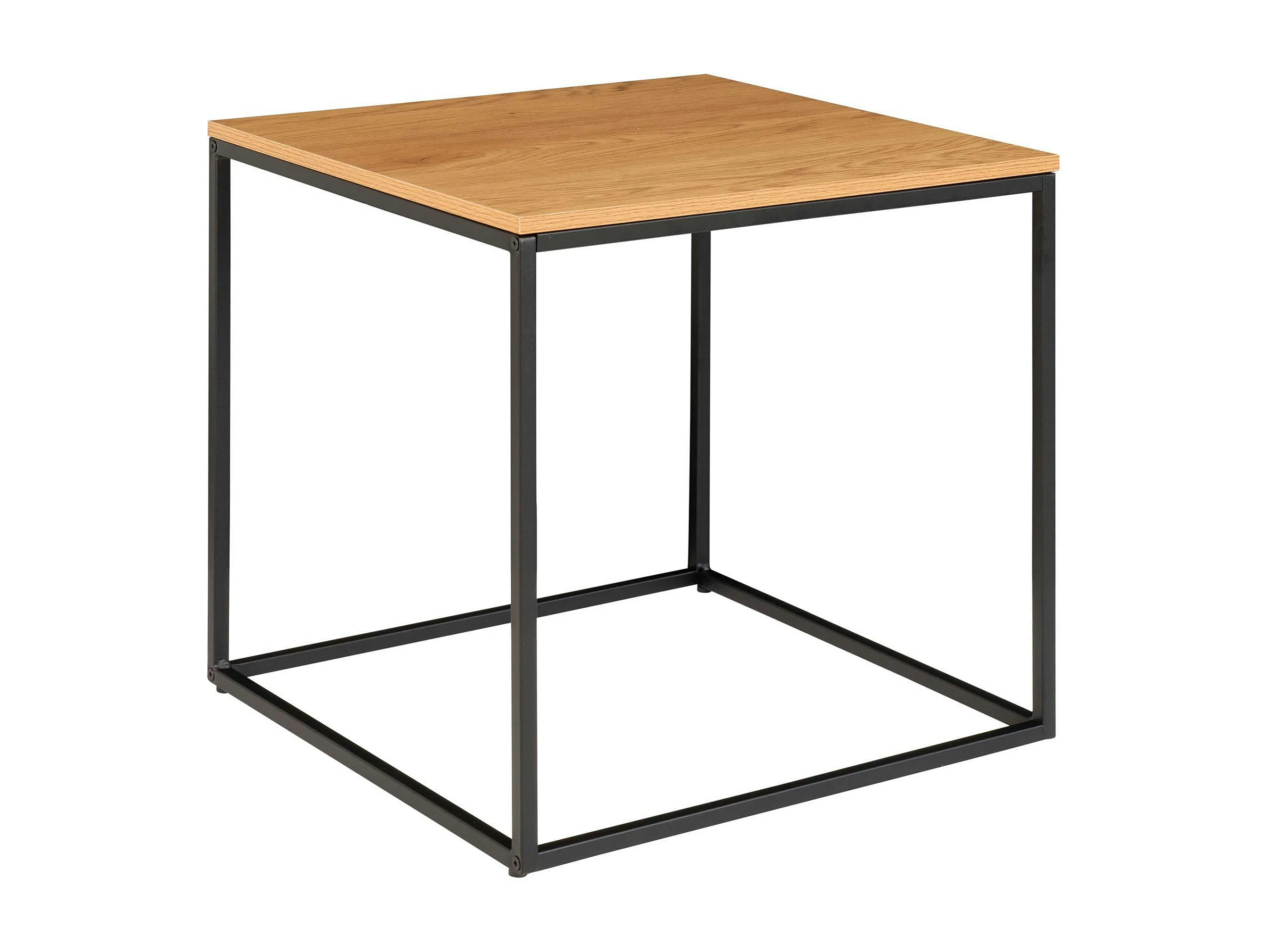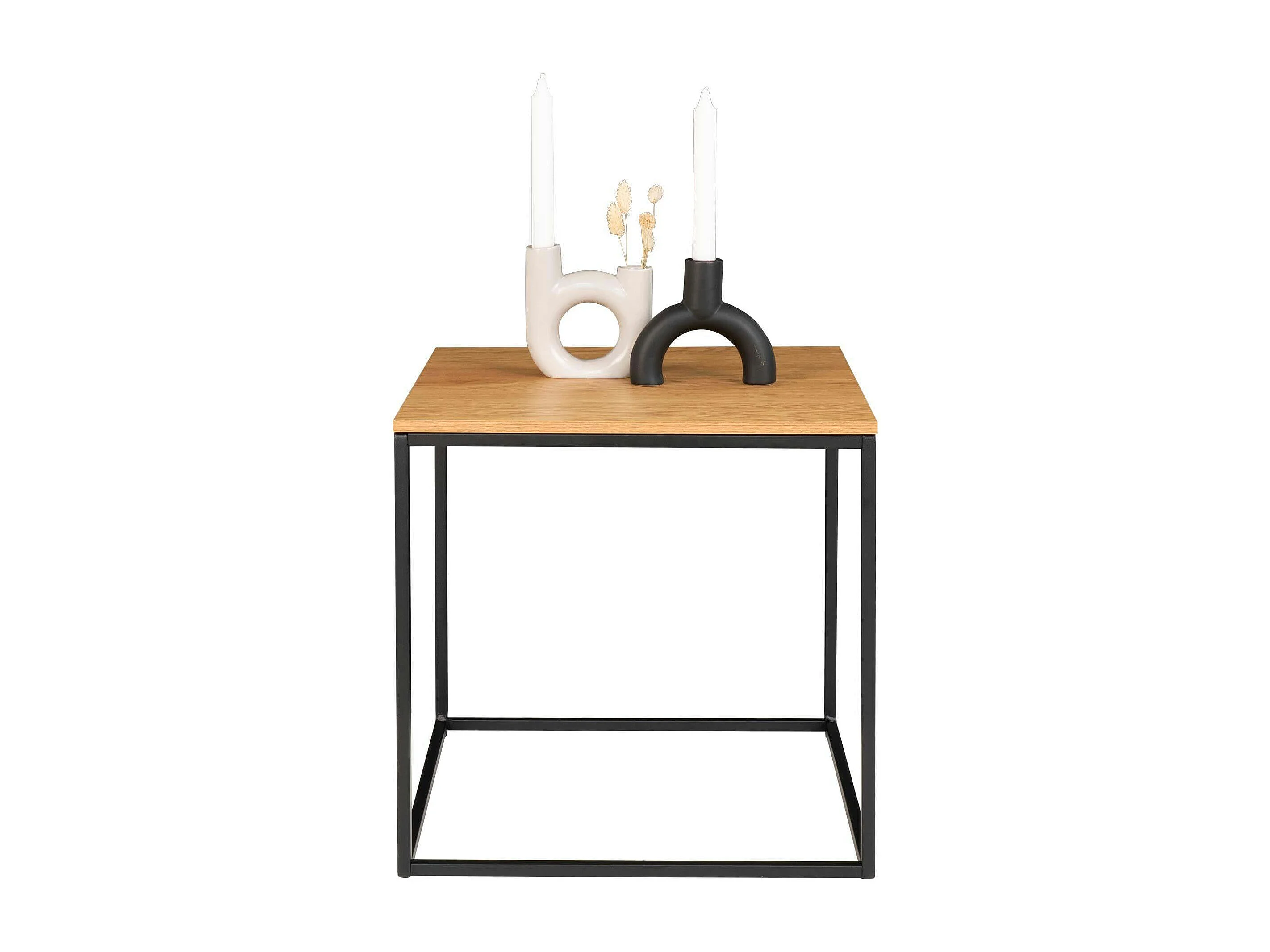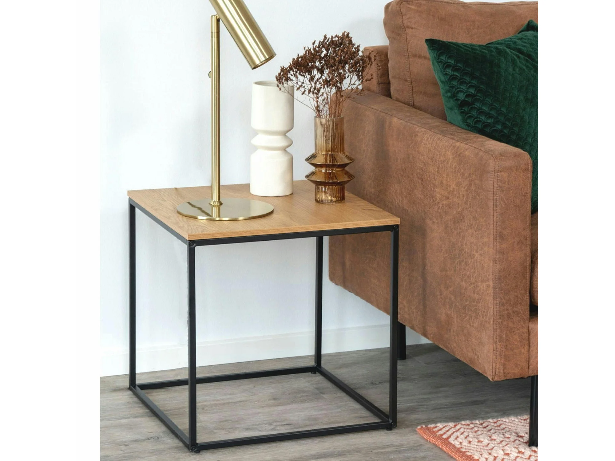 Bout de canapé cube noir - plateau effet chêne clair TALLINN