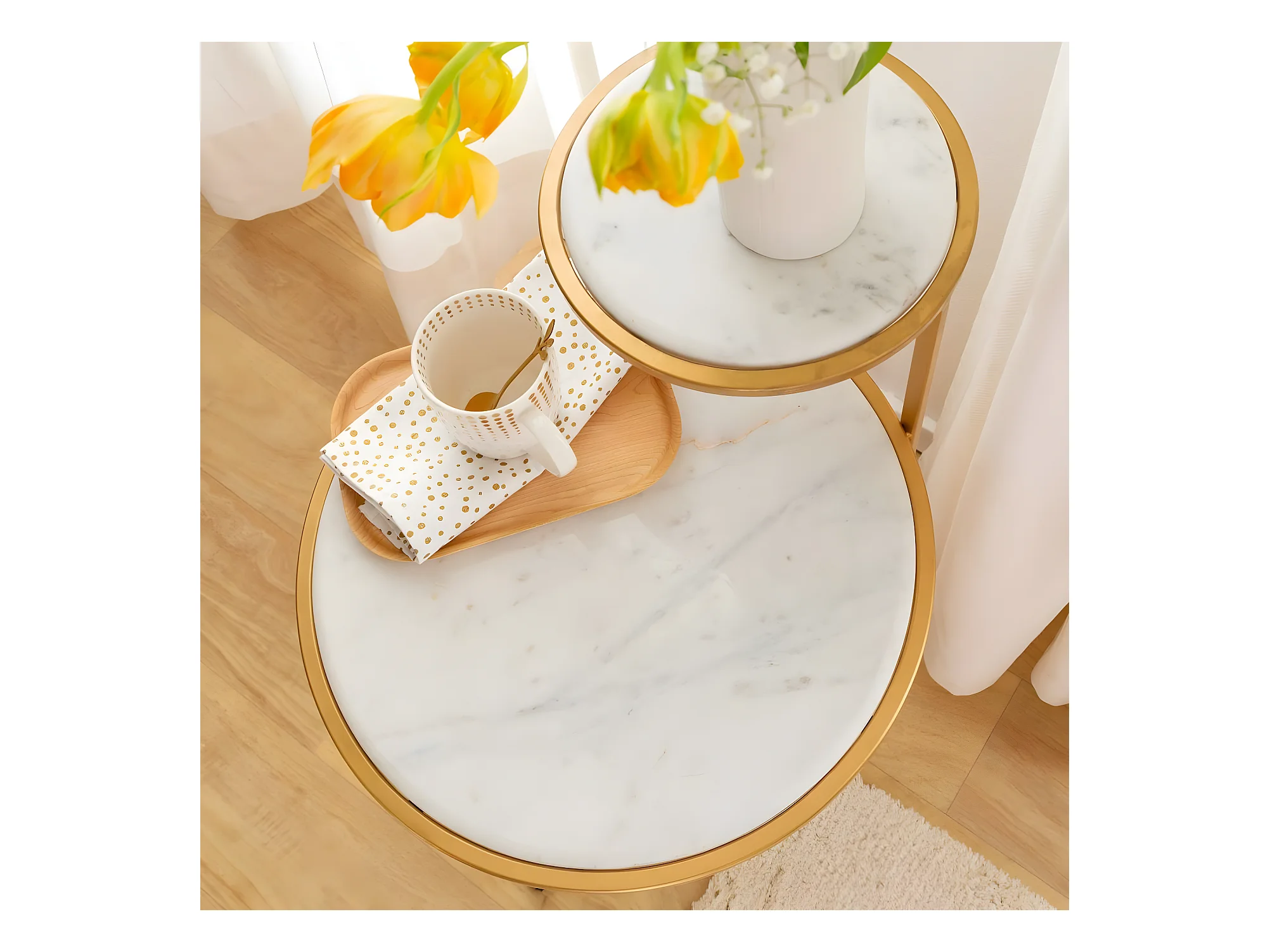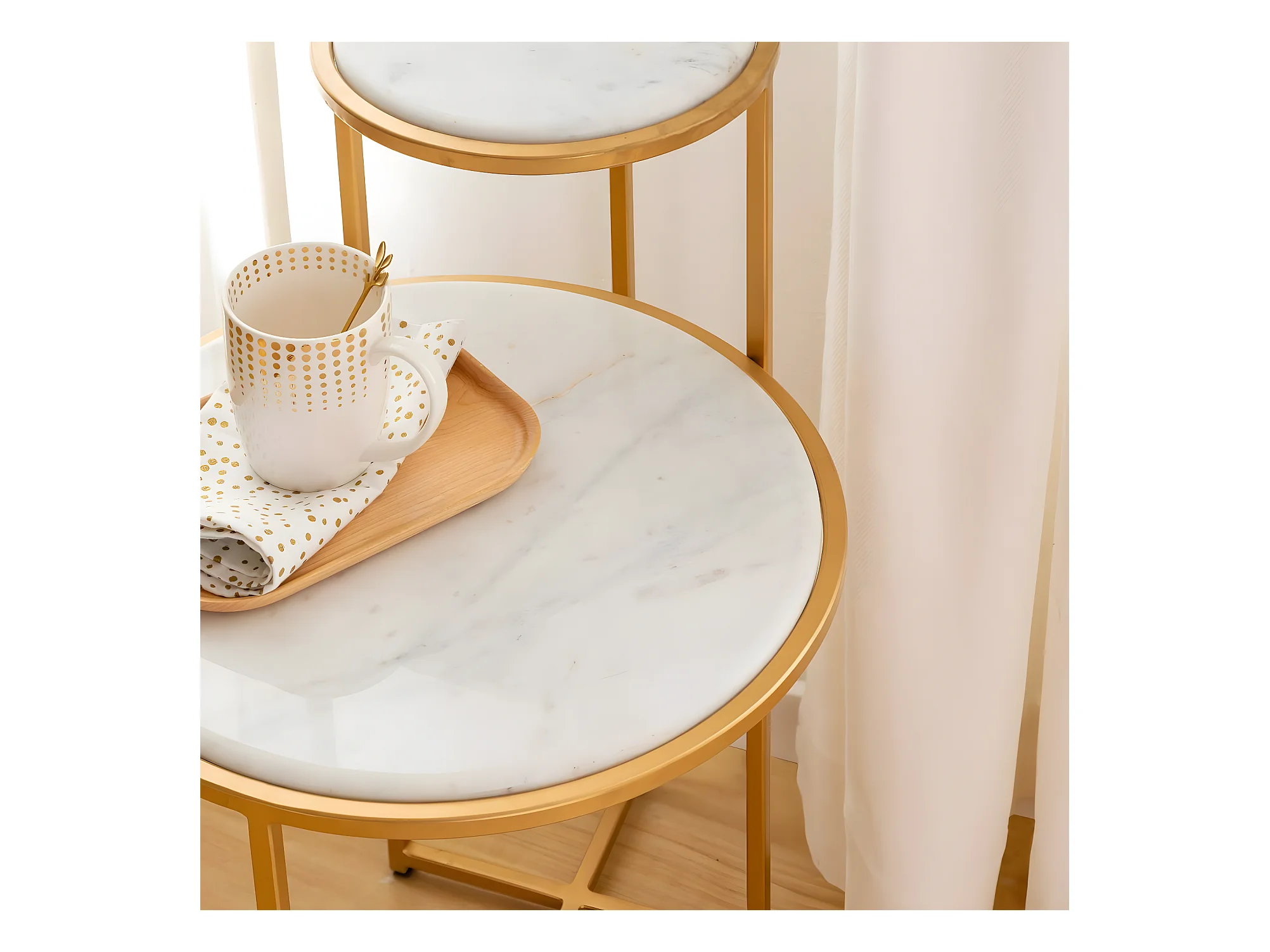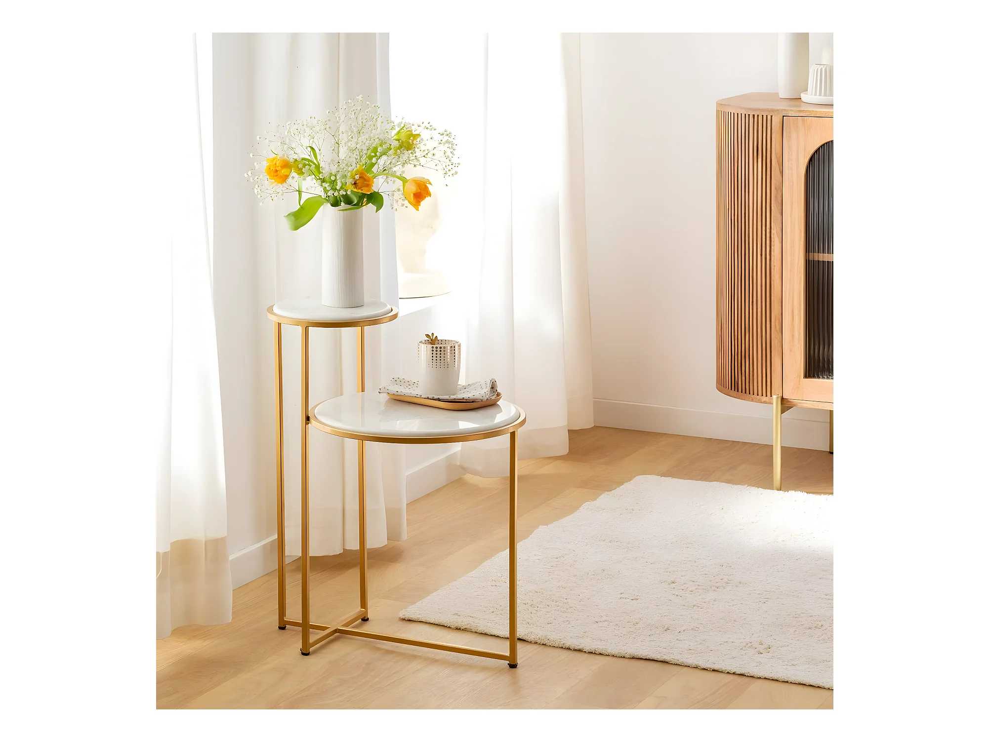 Table d'appoint ronde marbre blanc et métal doré Dorie H 51cm