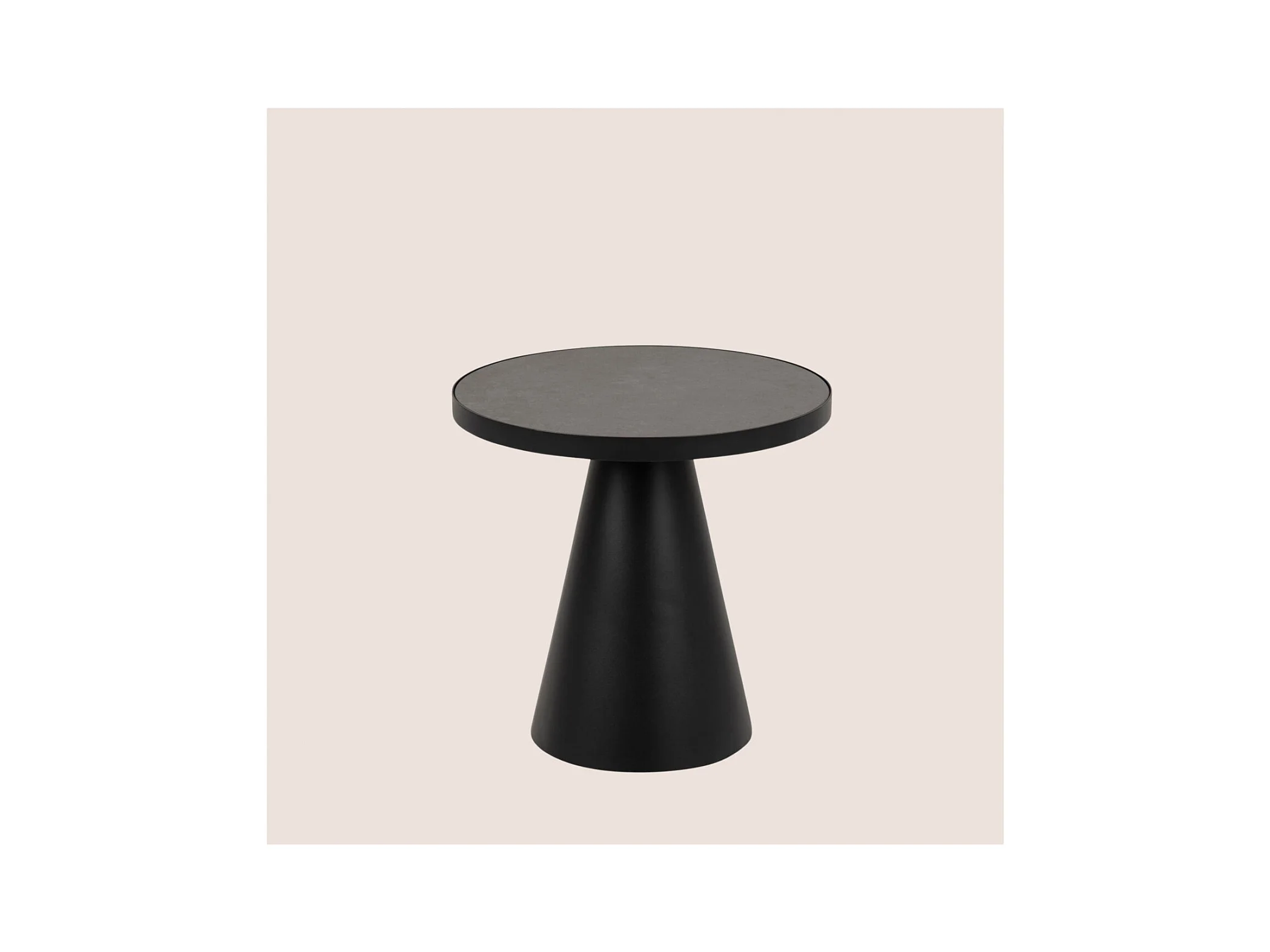 Bout de canapé rond en céramique et métal noir D45 - GIROLLE