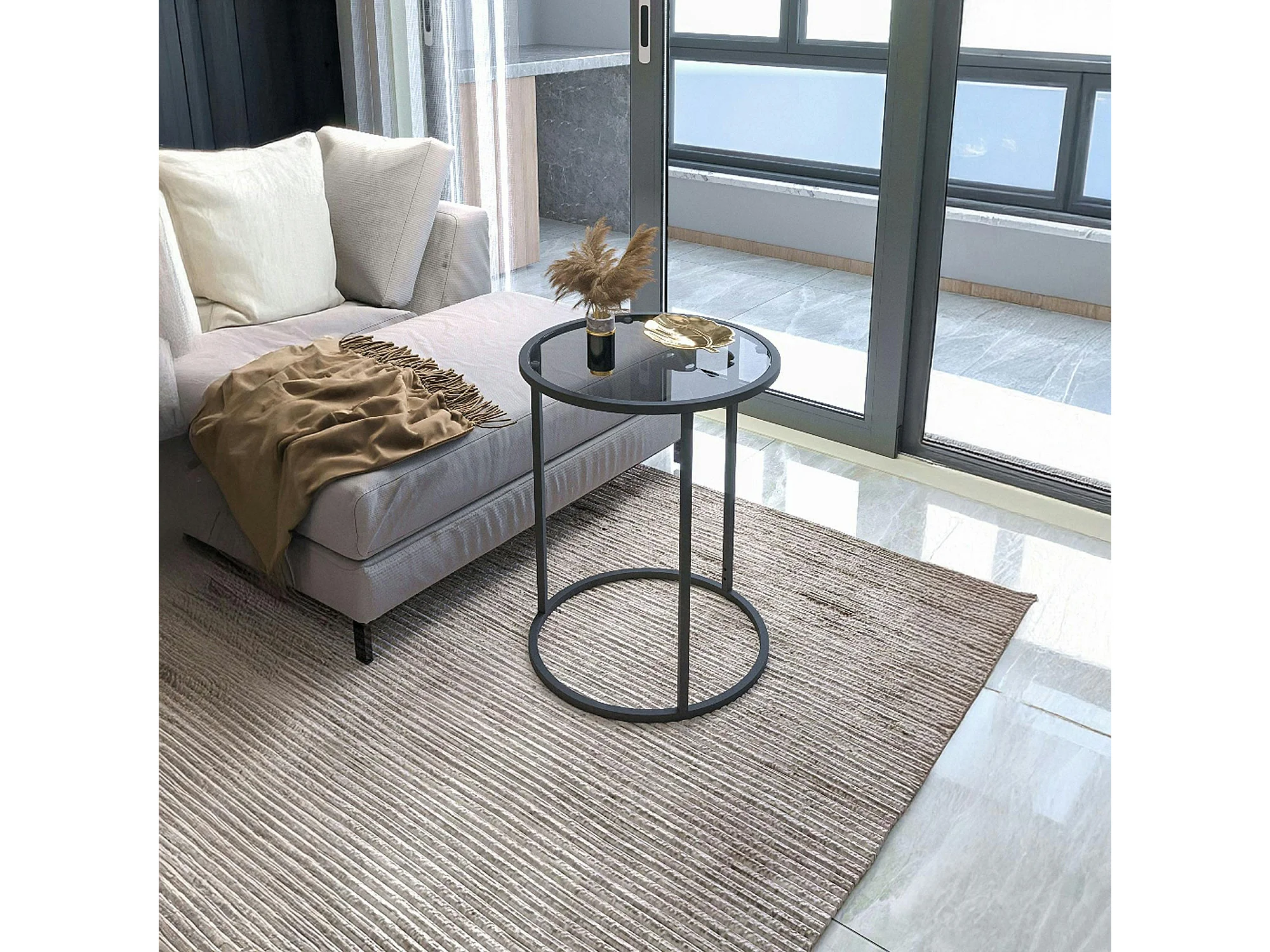 Bout de canapé rond en verre trempé - style design TULUM