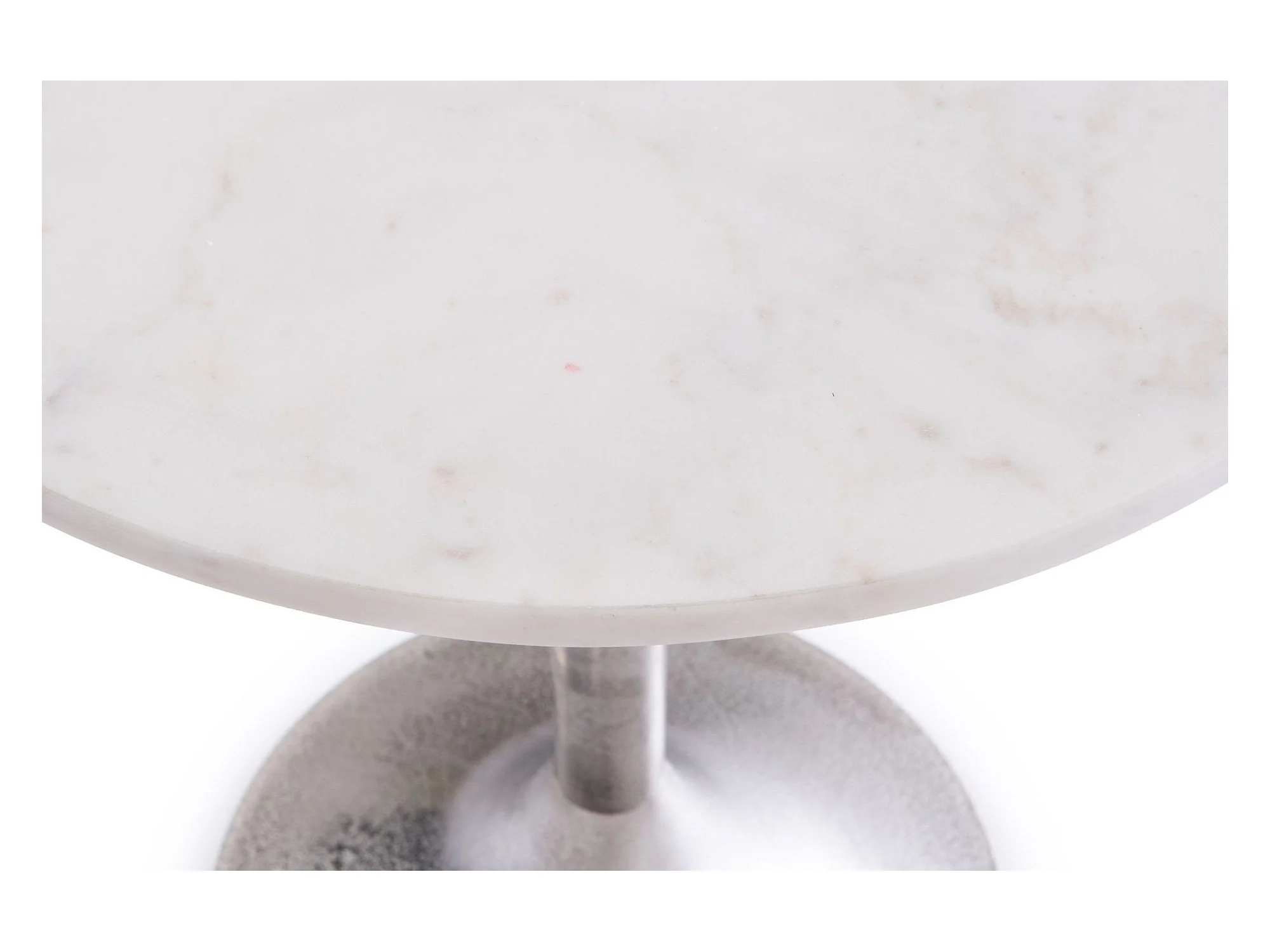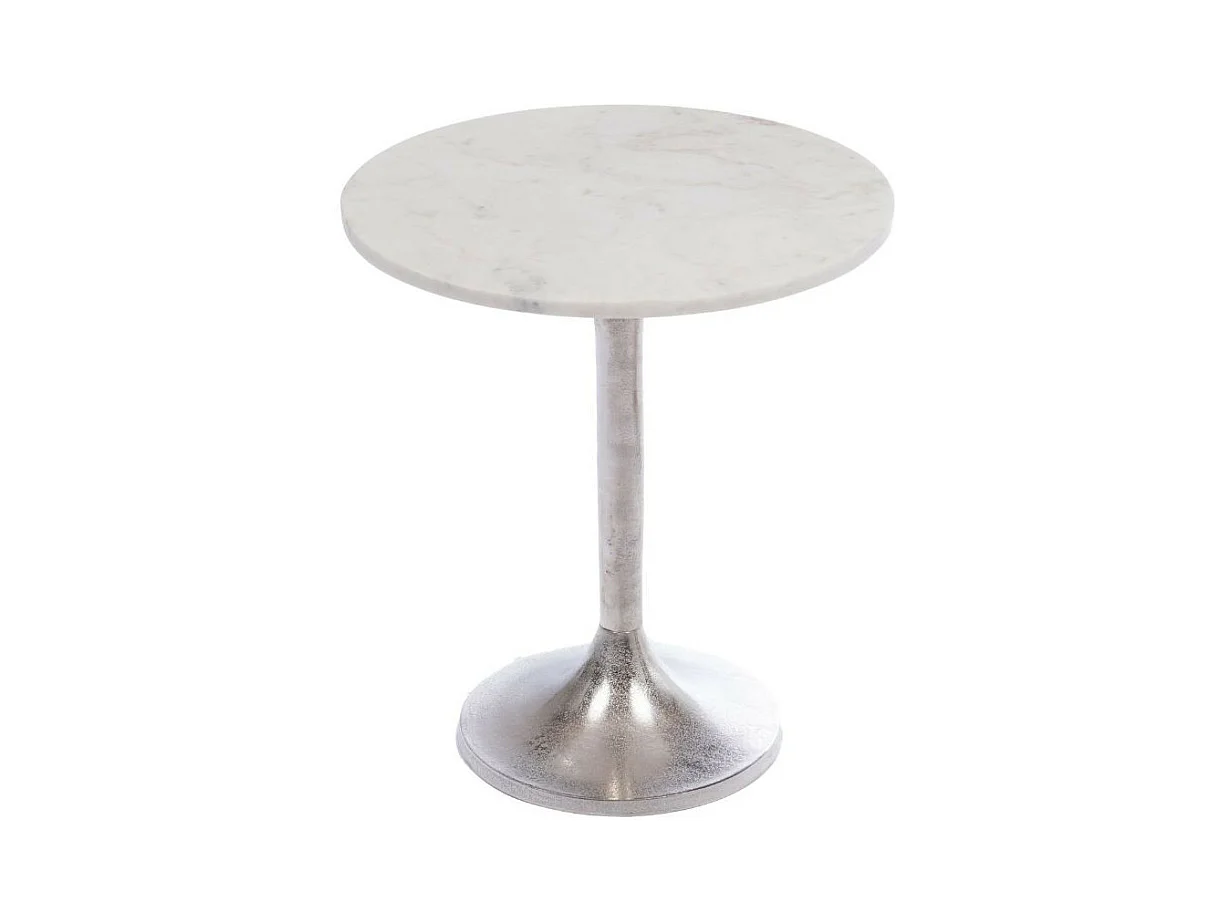 Bout de canapé tulipe en métal argenté et marbre blanc D46 - PLAKA