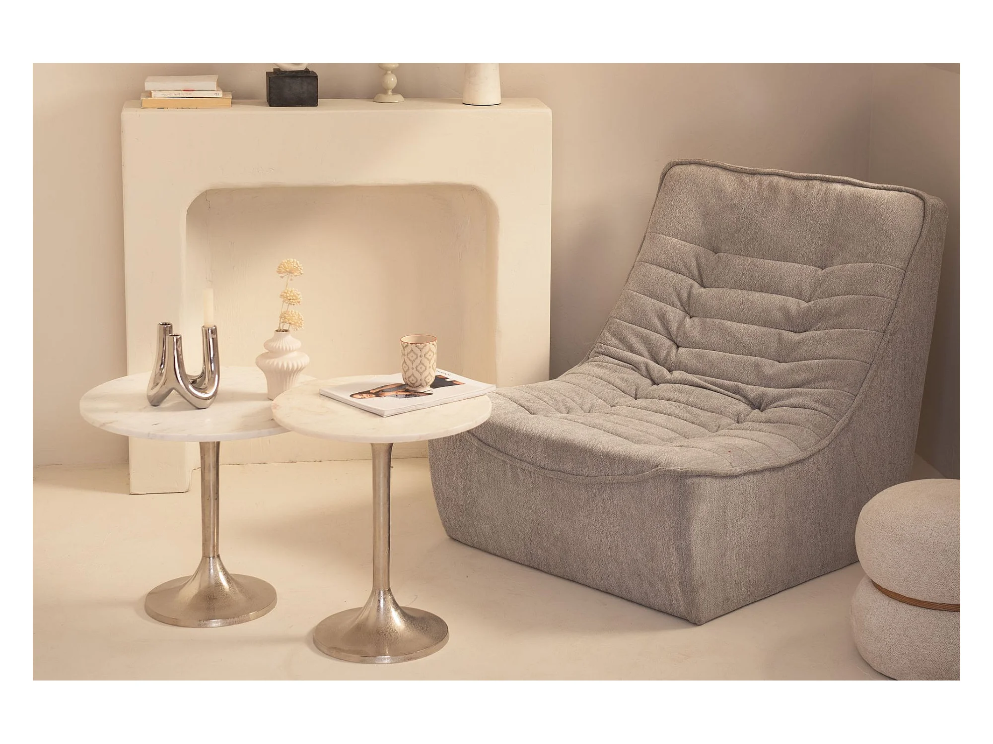 Table d'appoint ronde marbre et fibre de verre blanc Ravies