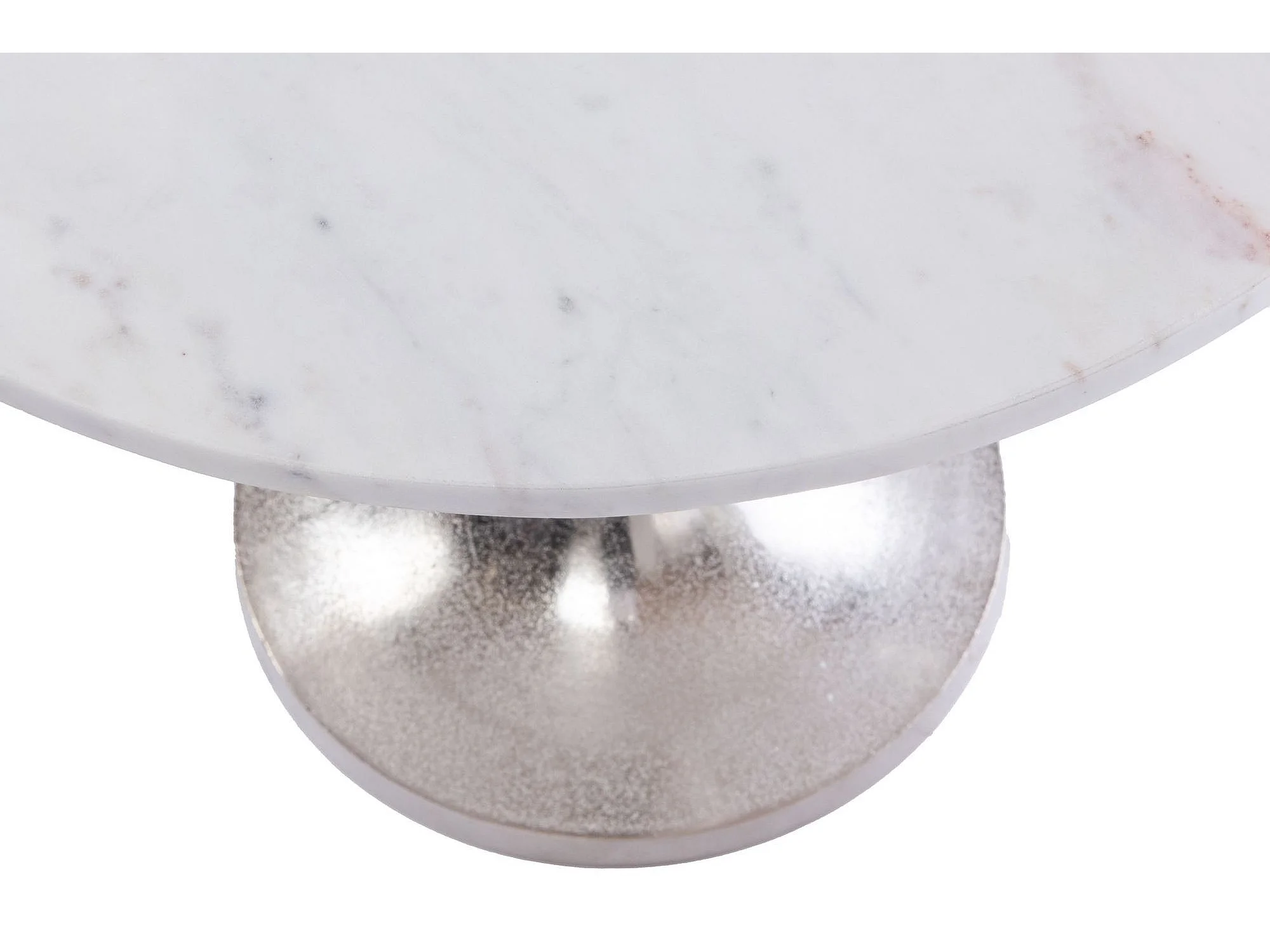 Bout de canapé tulipe en métal argenté et marbre blanc D55 - PLAKA