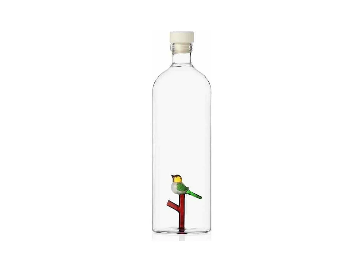 Bouteille en verre borosilicate, Petit oiseau, vert/marron, 1000 ml, Animal Farm
