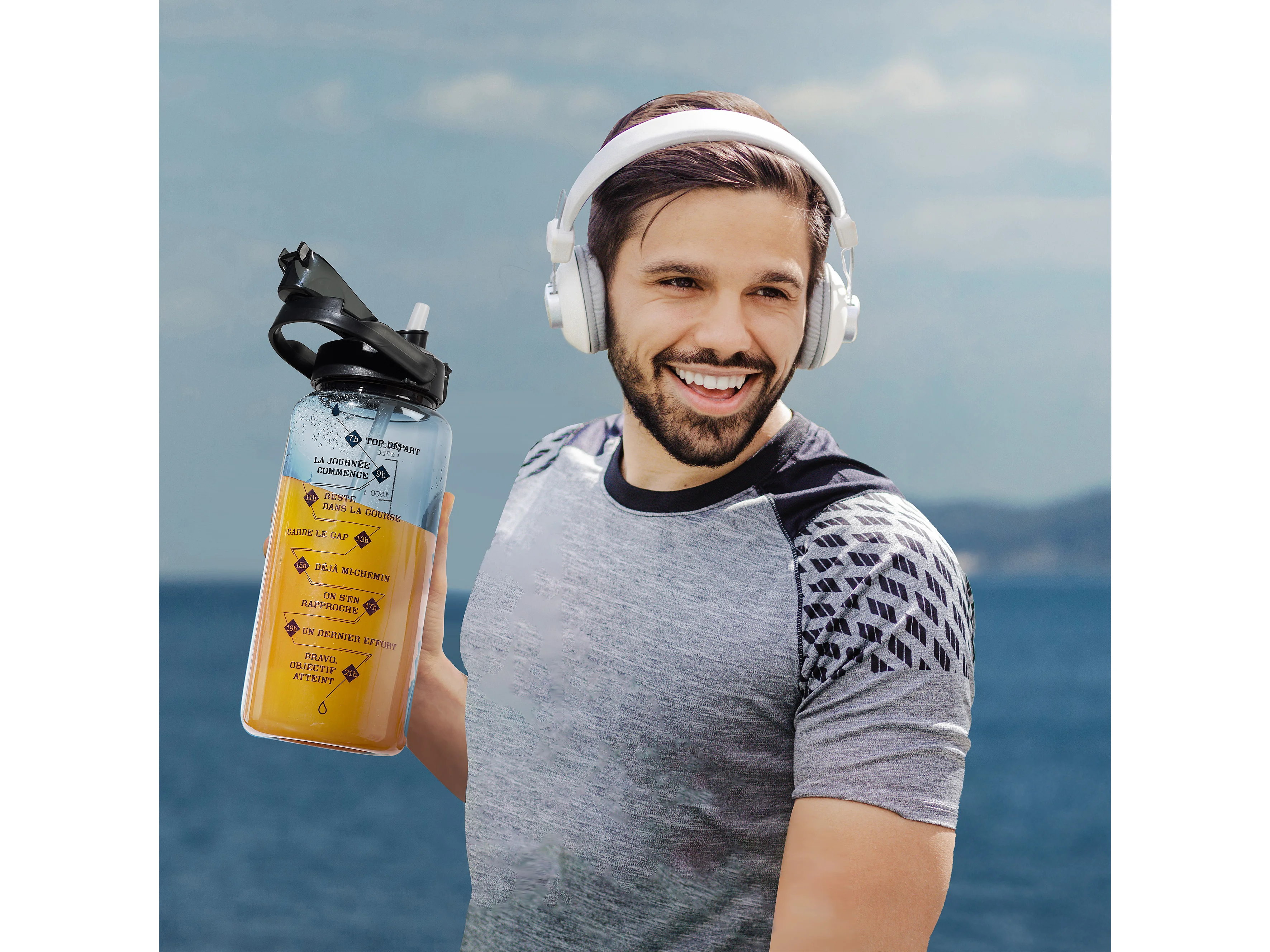 Bouteille Motivation Transparente Noire 2l Noir, Transparent