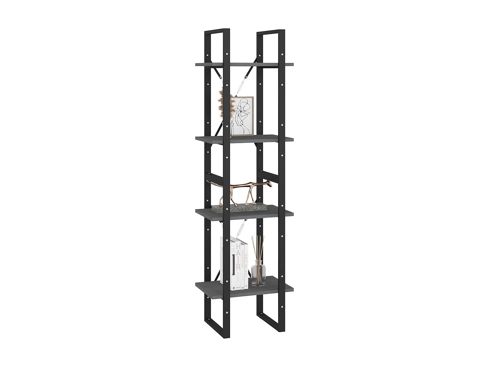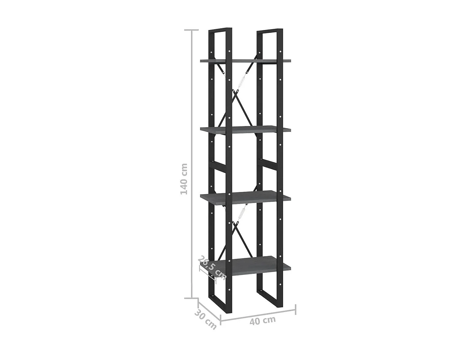 Bowling Green Bibliothèque à 4 niveaux Gris 40x30x140 cm Bois de pin massif