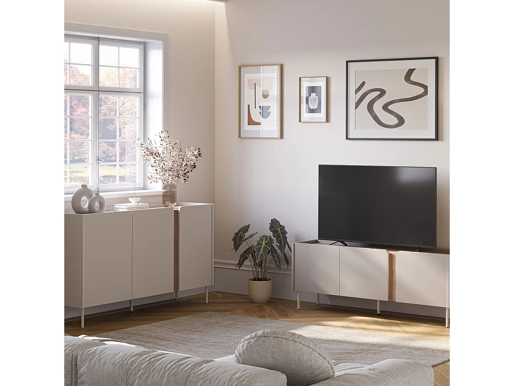 Boxy - Buffet 3 portes en bois et métal L150cm - Beige