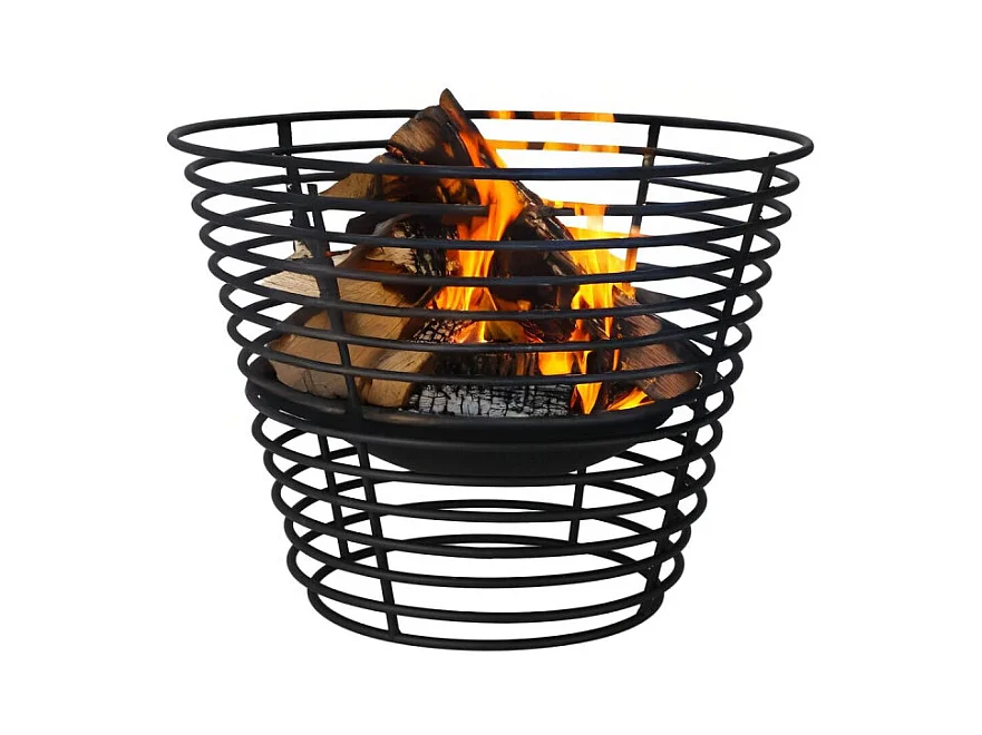 Brasero boule de feu cheminée foyer extérieur Ø 75 x 55H cm grille à charbon + cuisson couvercle tisonnier métal noir