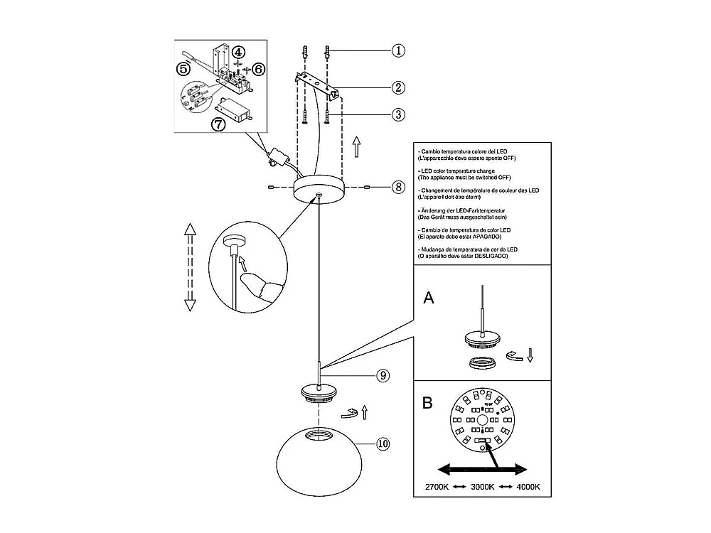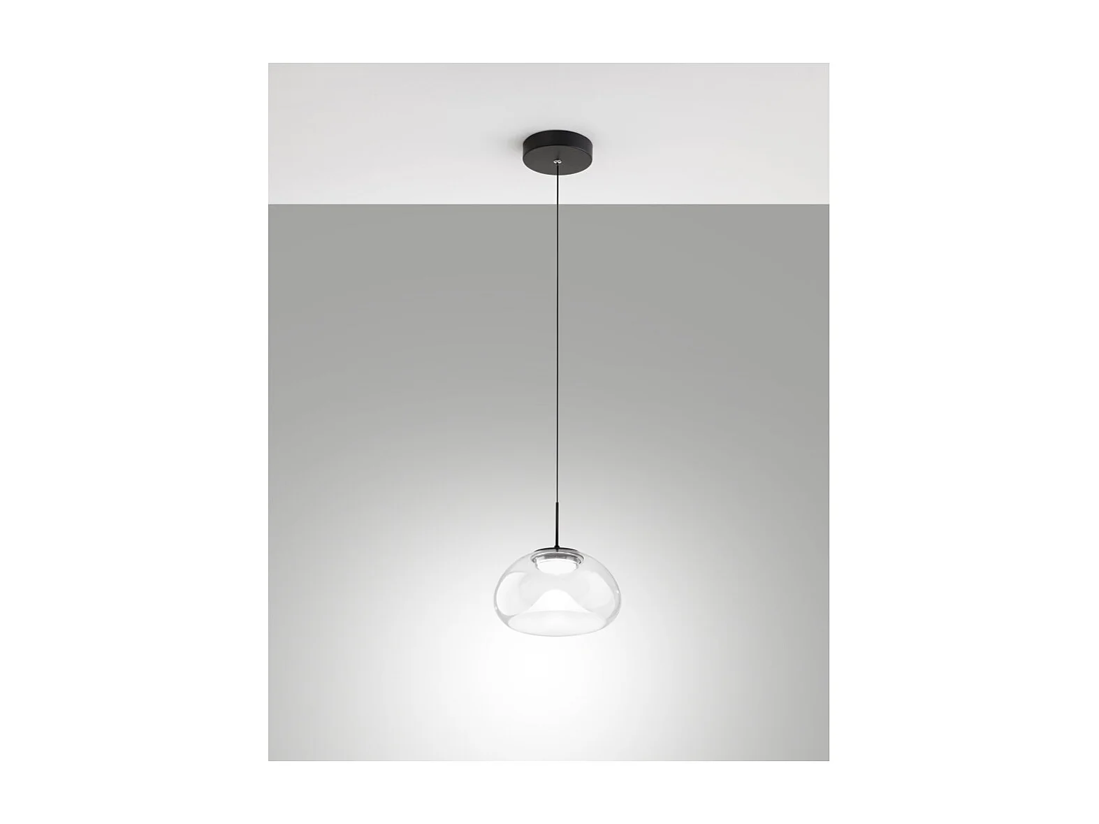Brena - Suspension simple transparente de Fabas Luce - LED 10 W à intensité variable - Plafonnier - Diamètre 22 cm