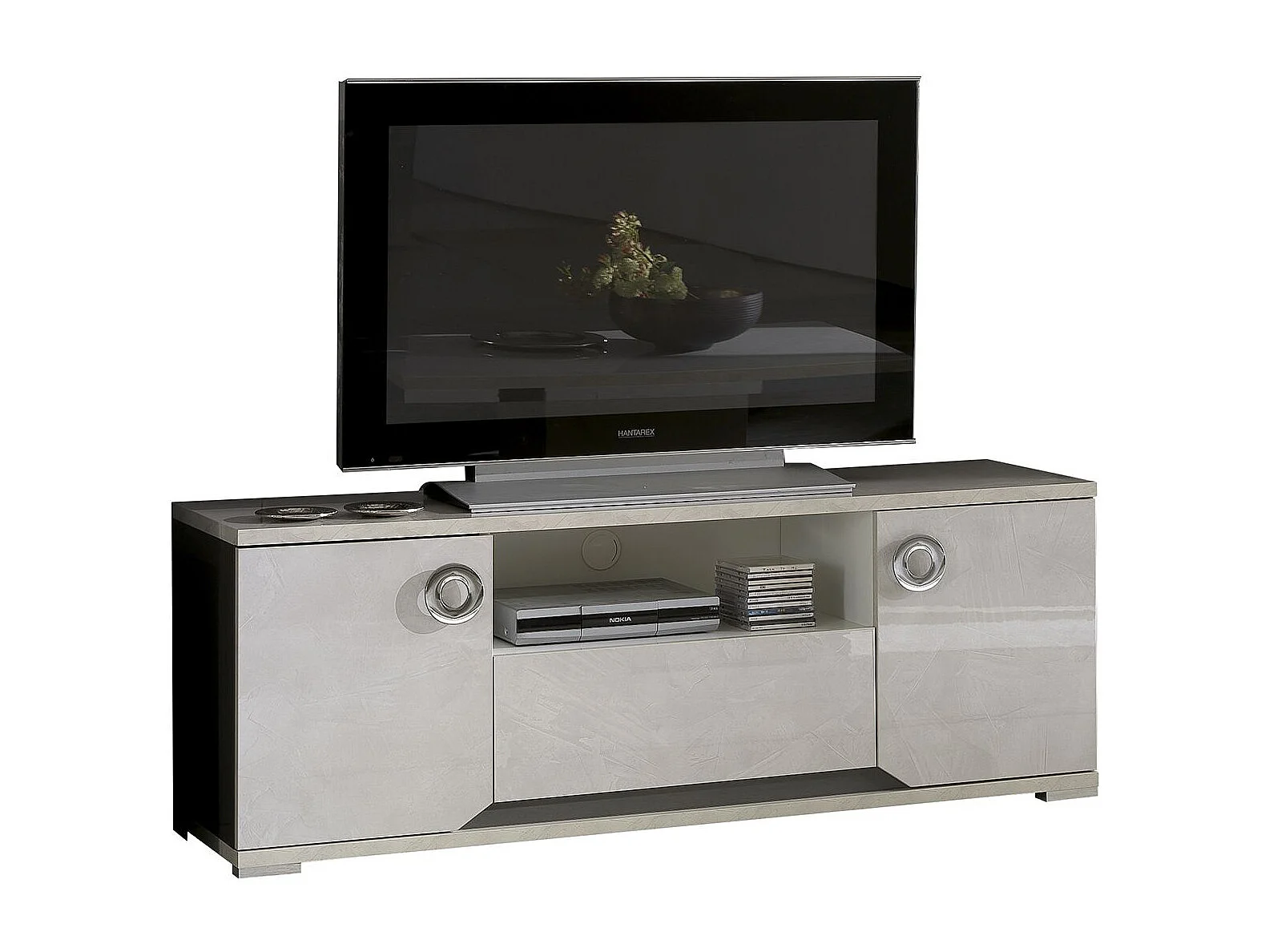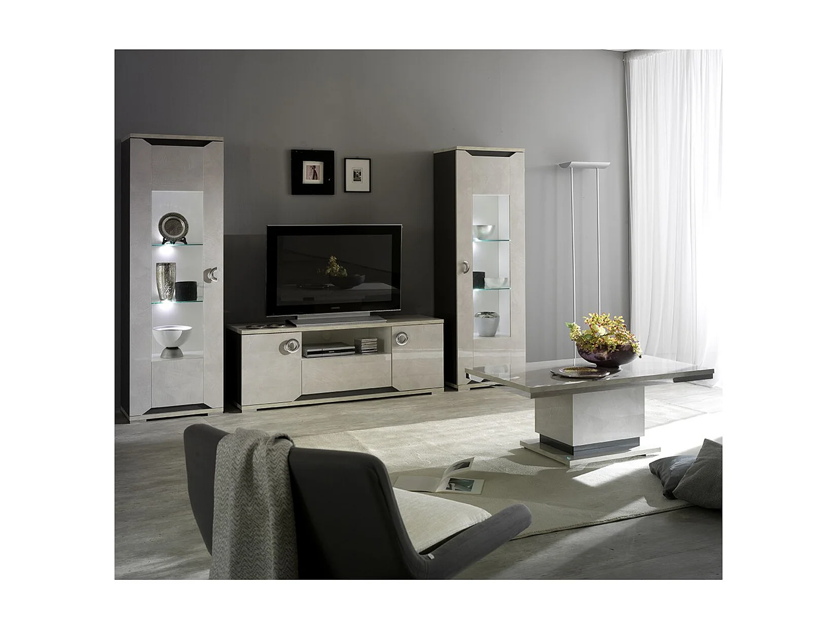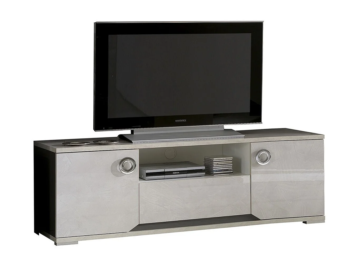 BRISE - Meuble TV Effet Béton Laqué 2 Portes