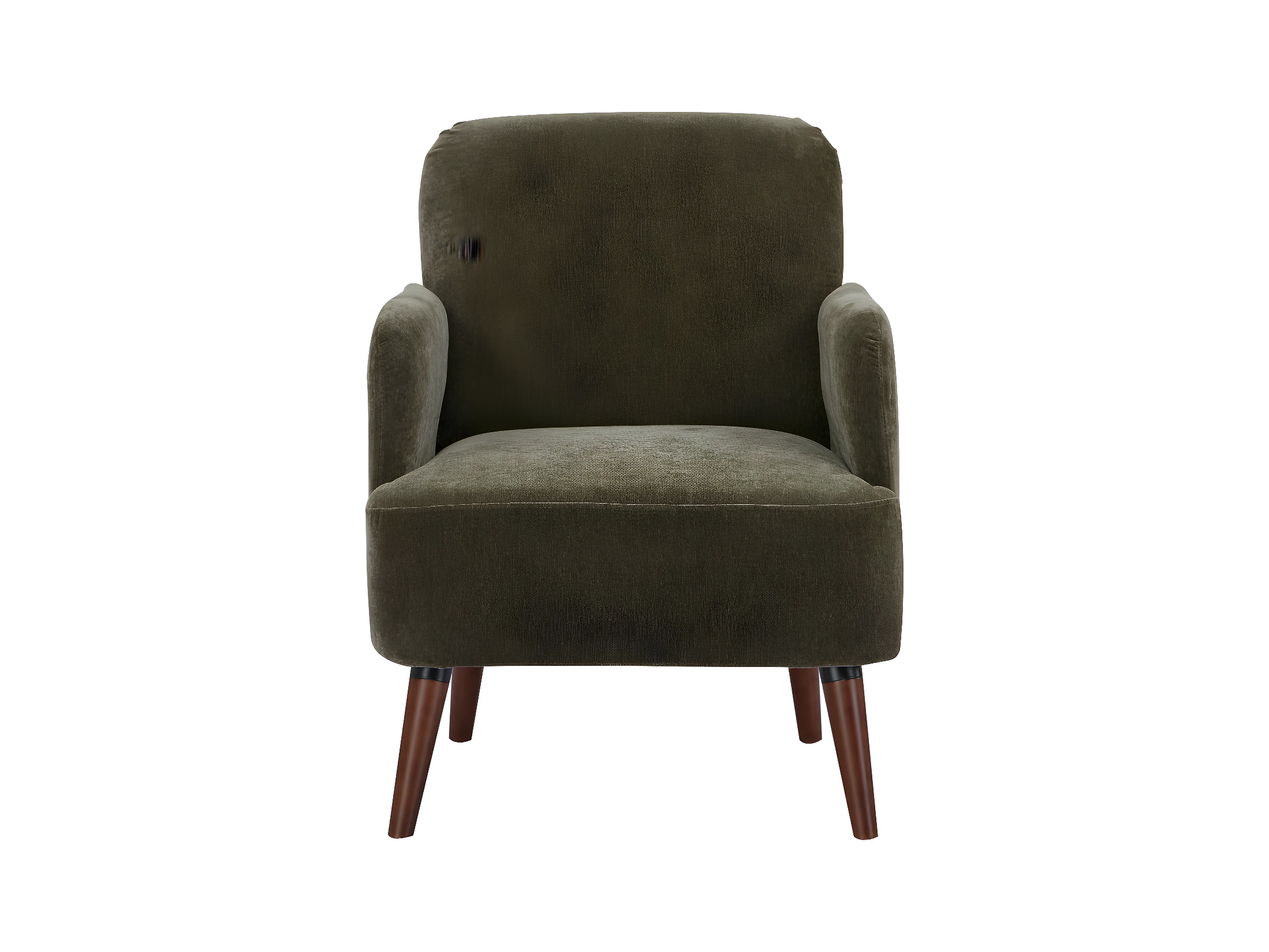 Brooks - Fauteuil rétro en tissu chenille pieds bois foncé - Vert kaki