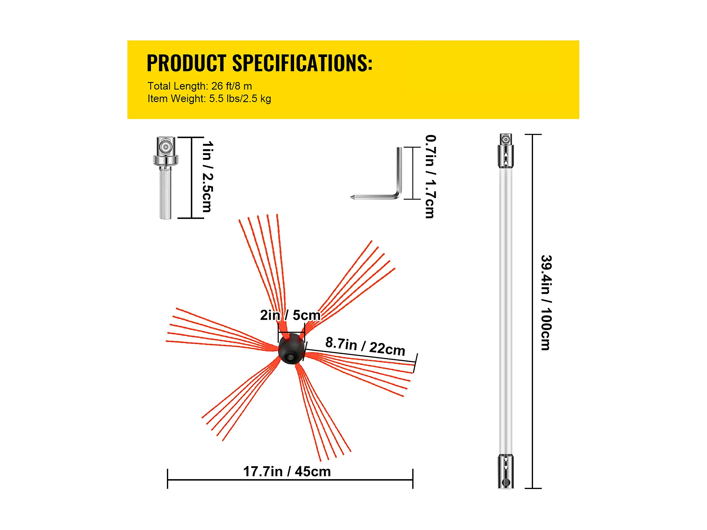 Brosse de Cheminée Kit SucceBuy, 66 cm, Brosse Rotative avec 8 Tiges en Nylon, Convient aux Tuyaux