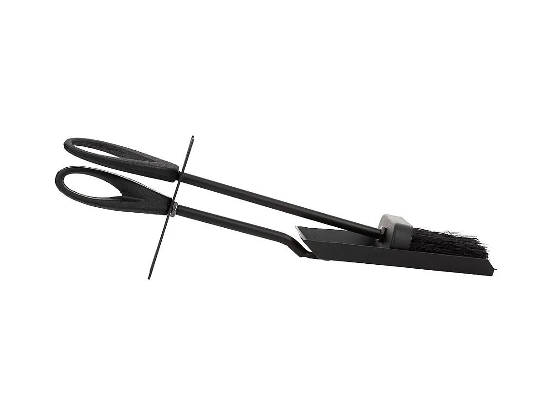 Brosse et pelle pour cheminée en métal noir 38x11x13h