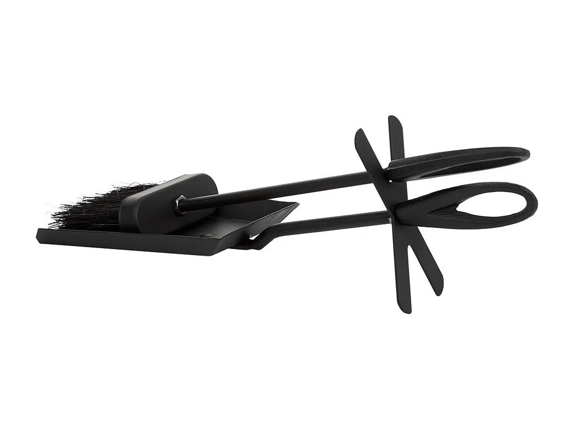 Brosse et pelle pour cheminée en métal noir 29x10x12h