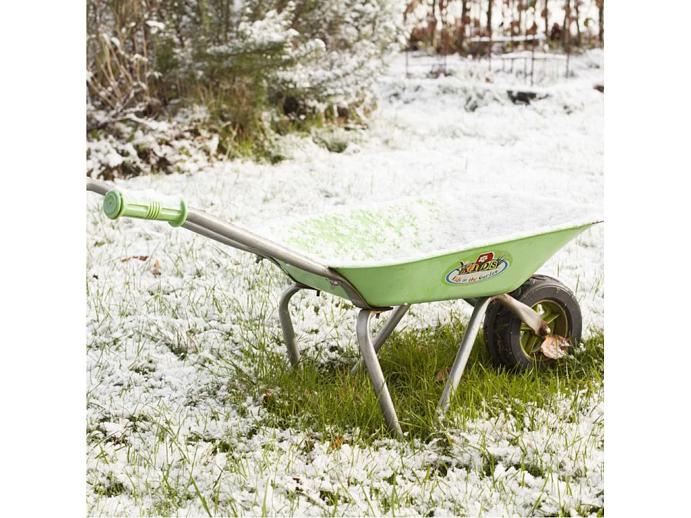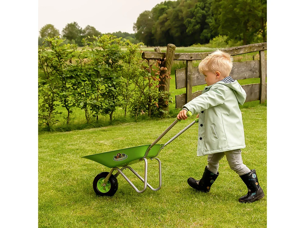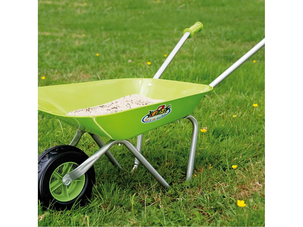 Chariot de jardin à main benne basculante 75° 125L charge max. 200 Kg 4 roues pneumatiques acier PP jaune vert