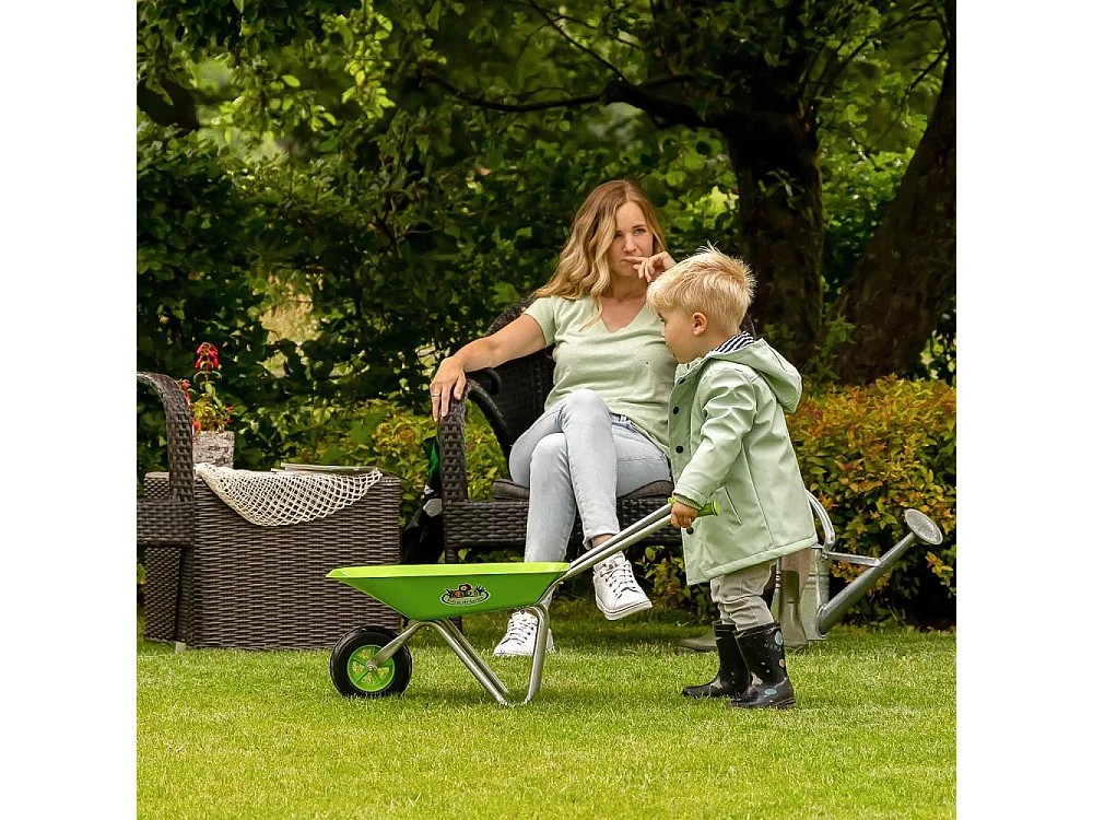 Chariot de jardin à main benne basculante 75° 75L charge max. 200 Kg 4 roues pneumatiques acier PP jaune vert