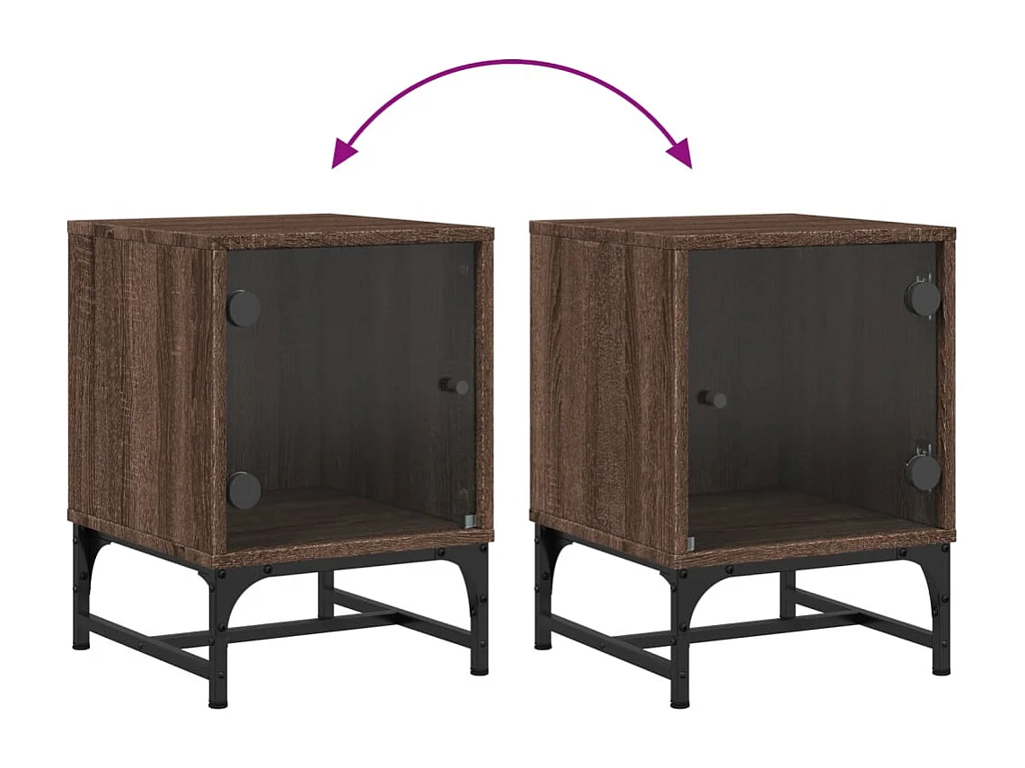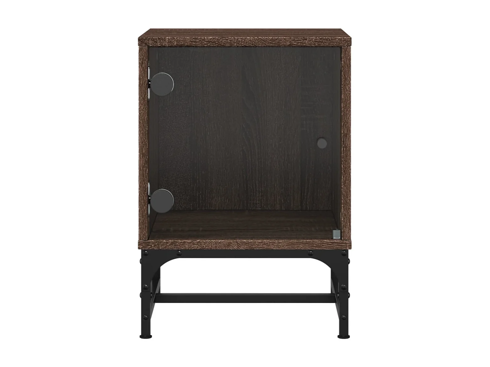 Butte Table de chevet avec porte en verre chêne marron 35x37x42 cm