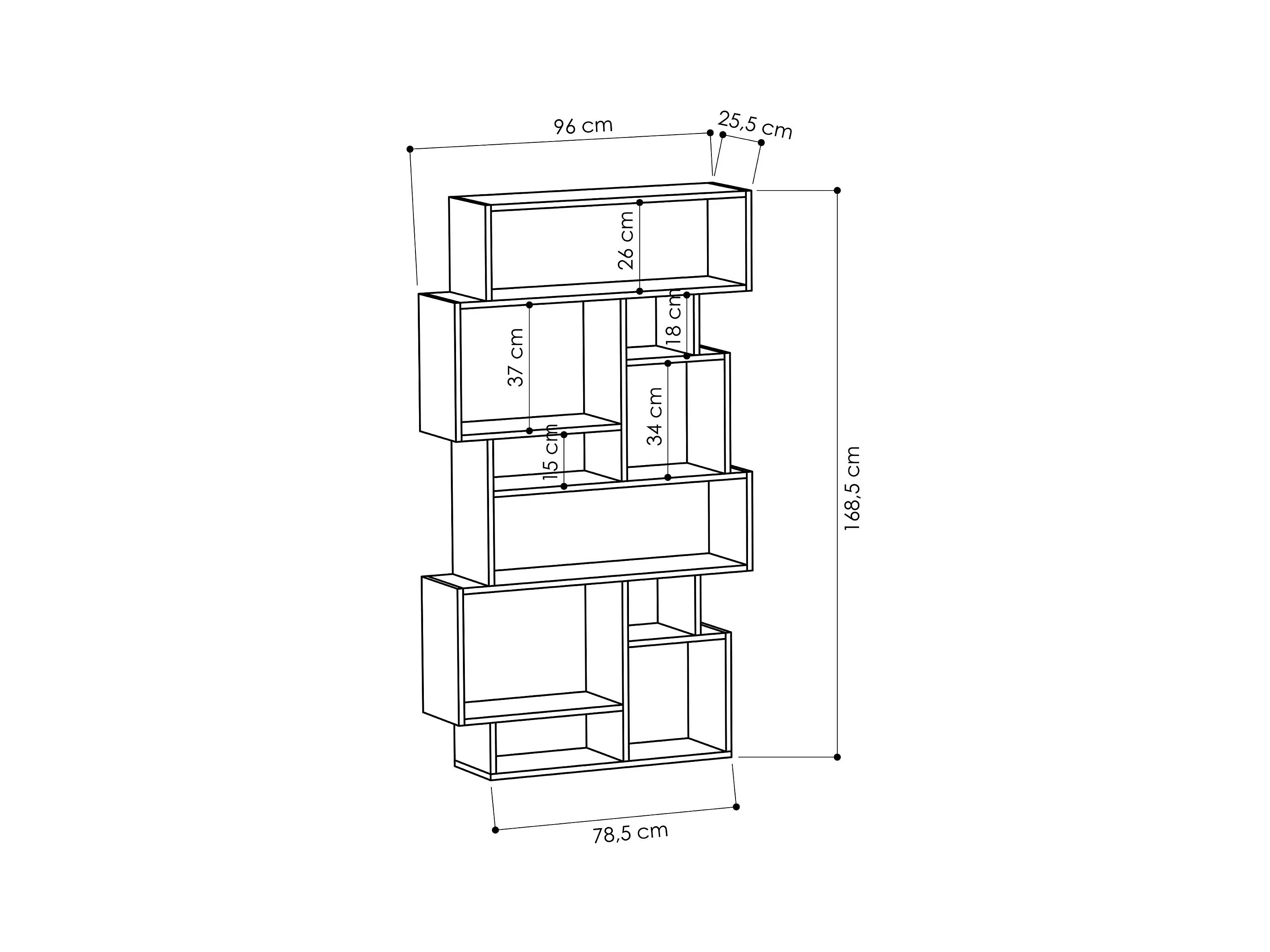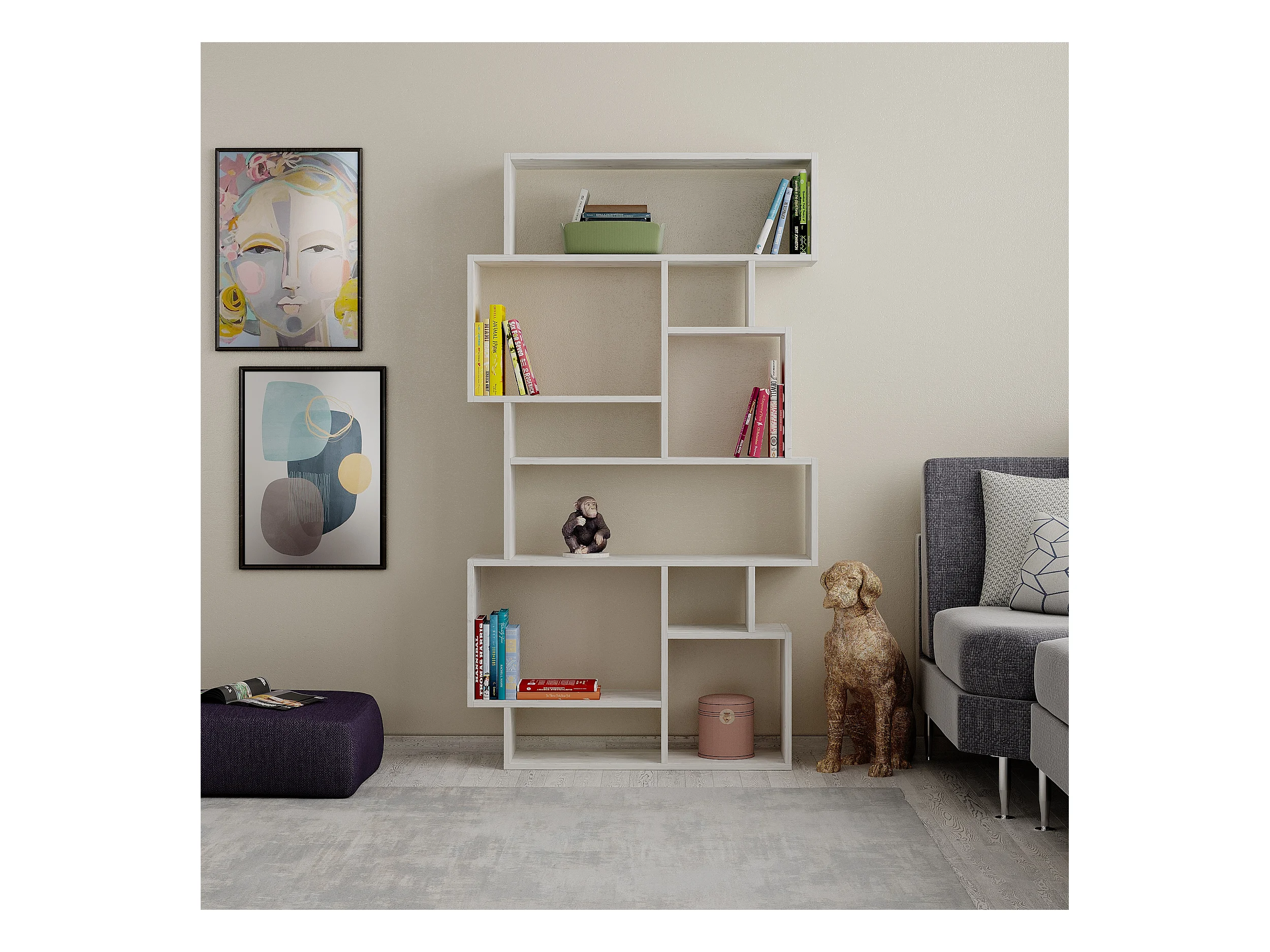 Decortie Blanc 25.5x96x168.5cm Bibliothèque à 10 compartiments Aggloméré Unité de présentation Karmato