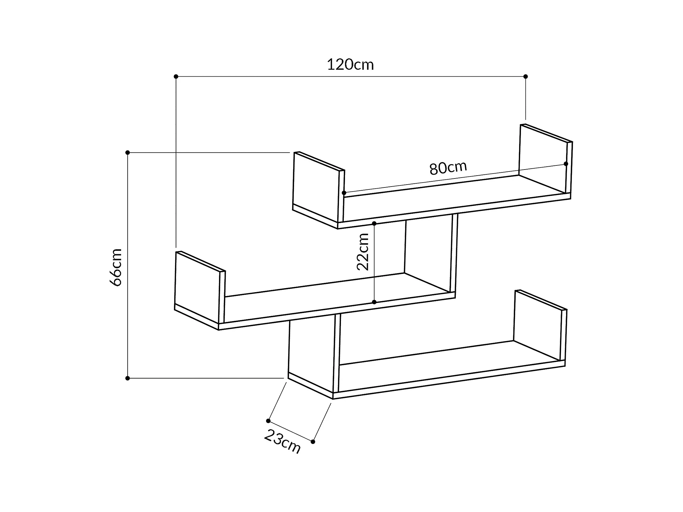 Etagère murale HALIC couleurs naturelles claires, 150x82x22