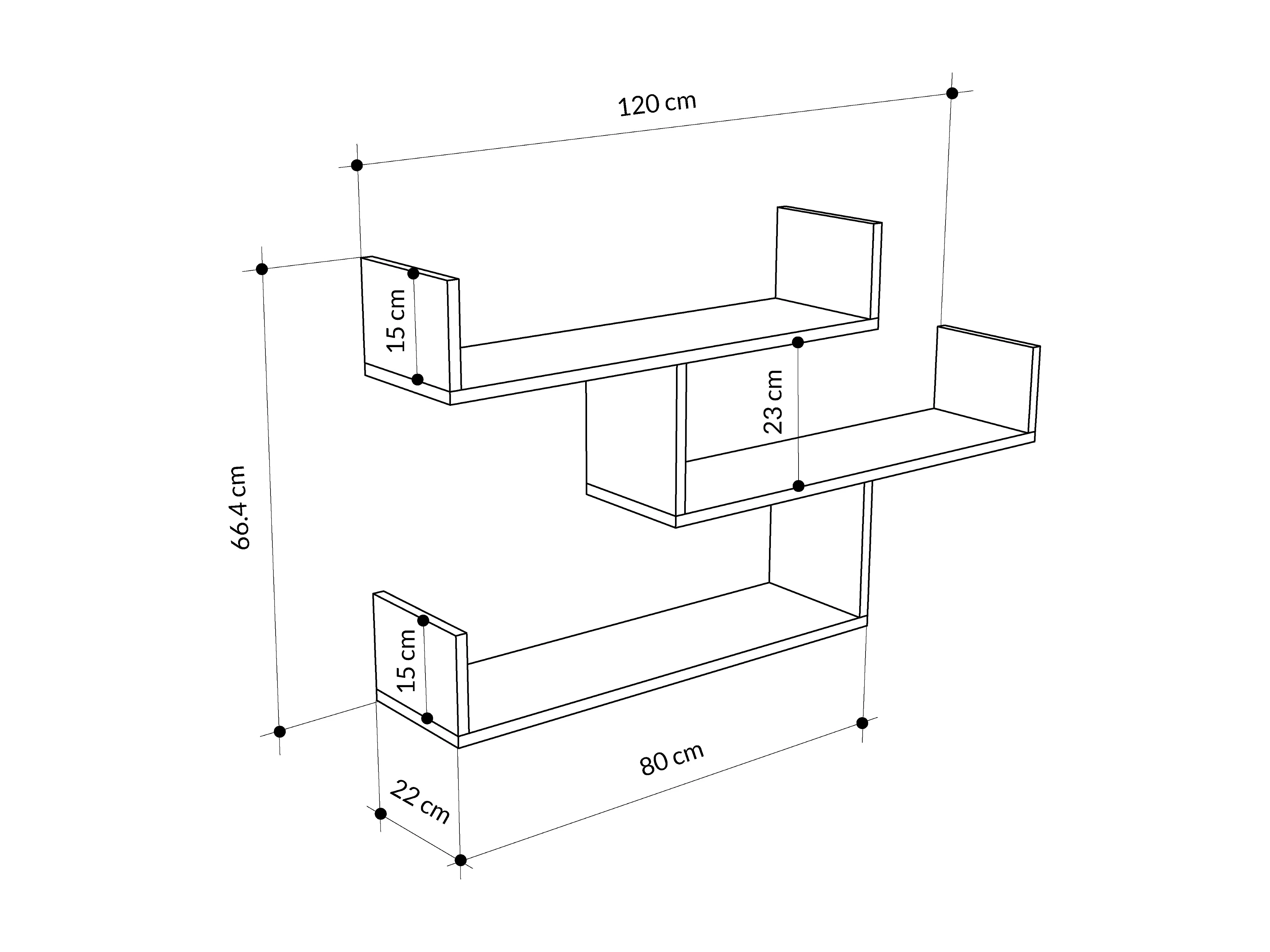 Etagère murale HALIC couleurs naturelles claires, 150x82x22