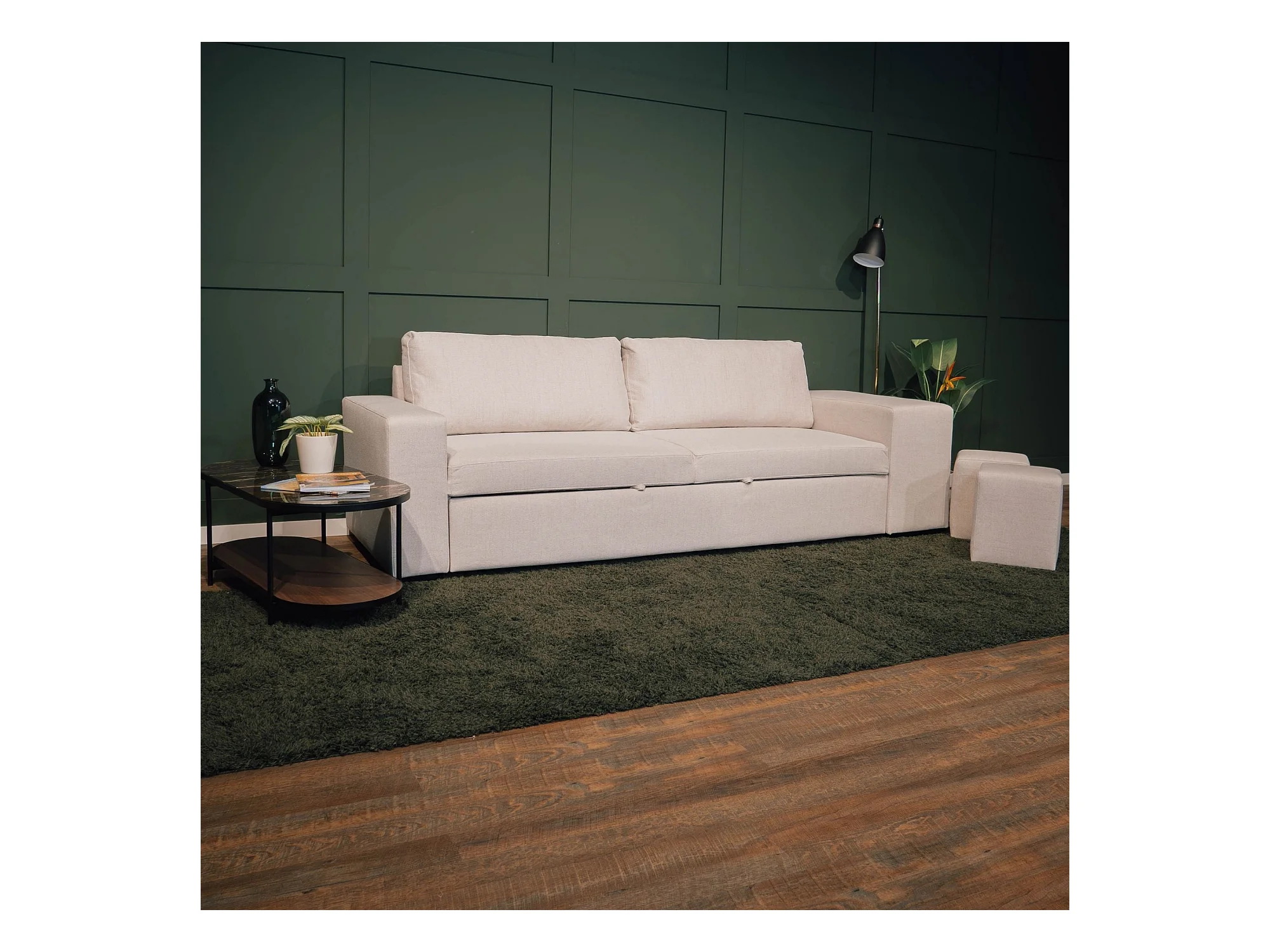 BUDWING Canapé-Lit Avery Beige avec 2 Poufs - 3 Places - 248x117x90 cm