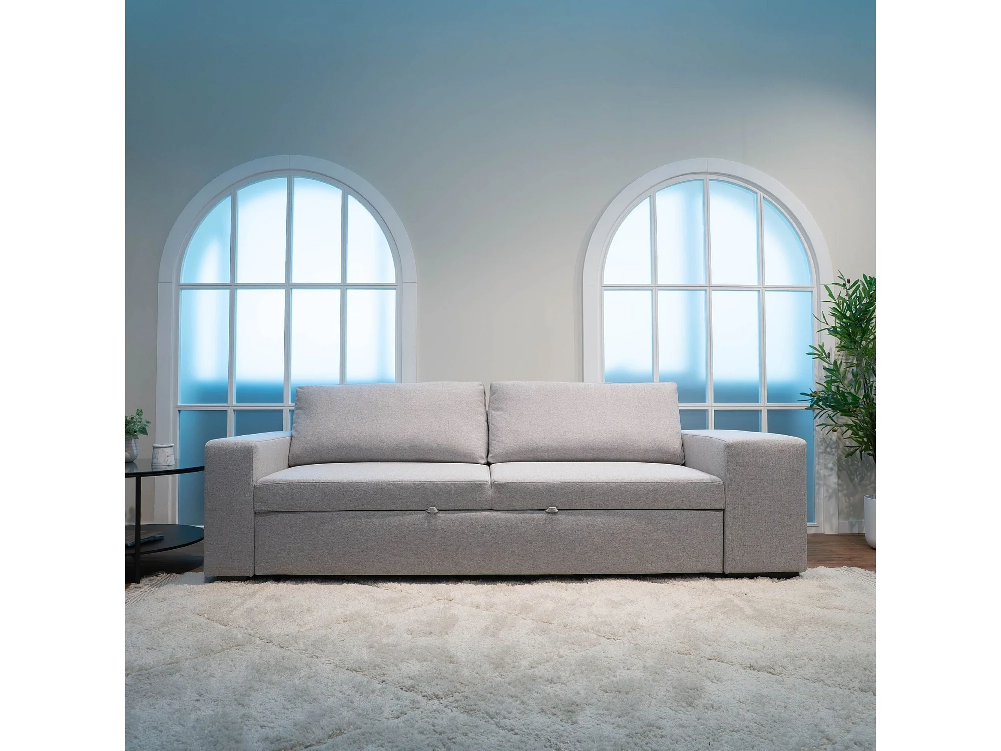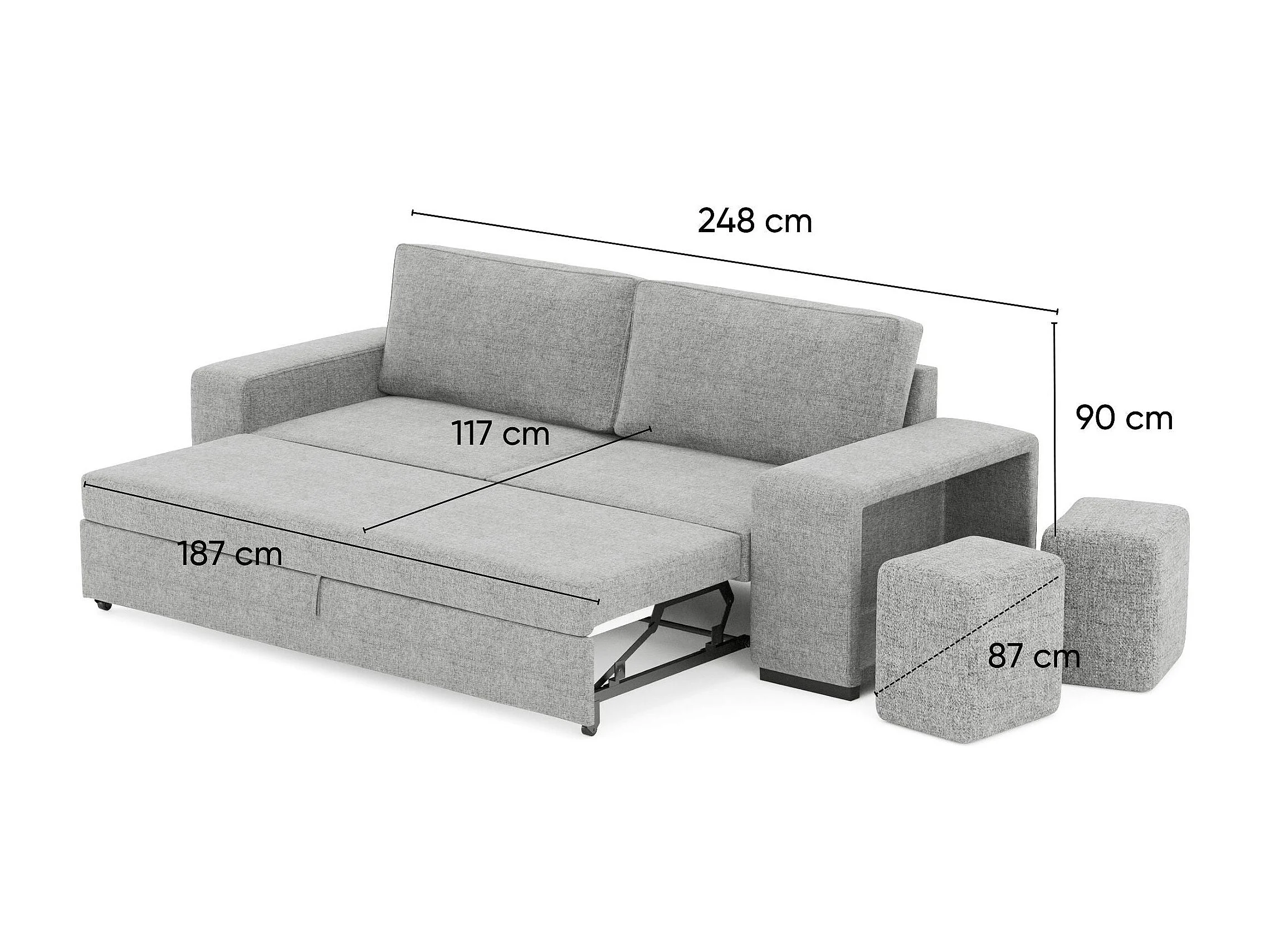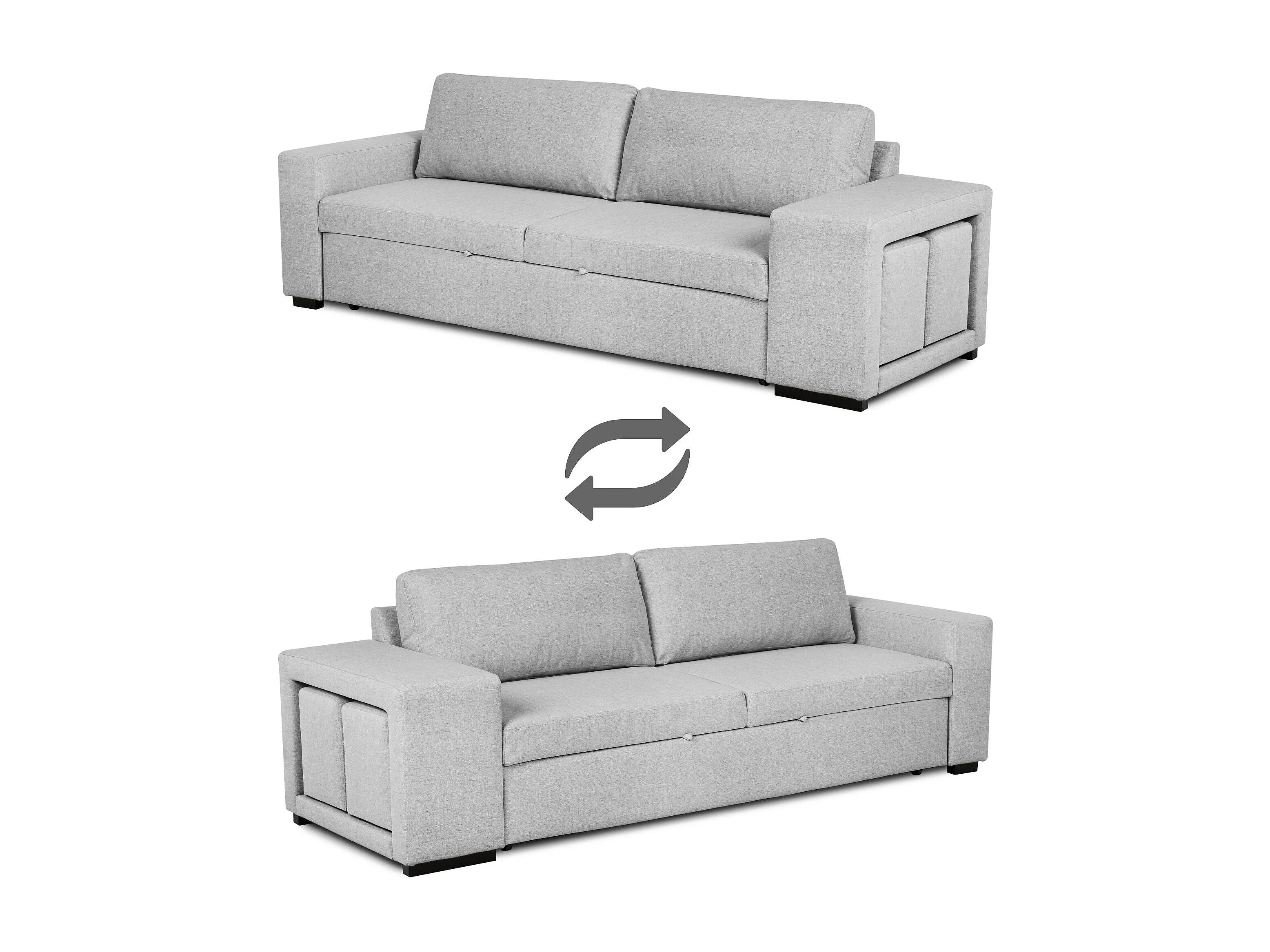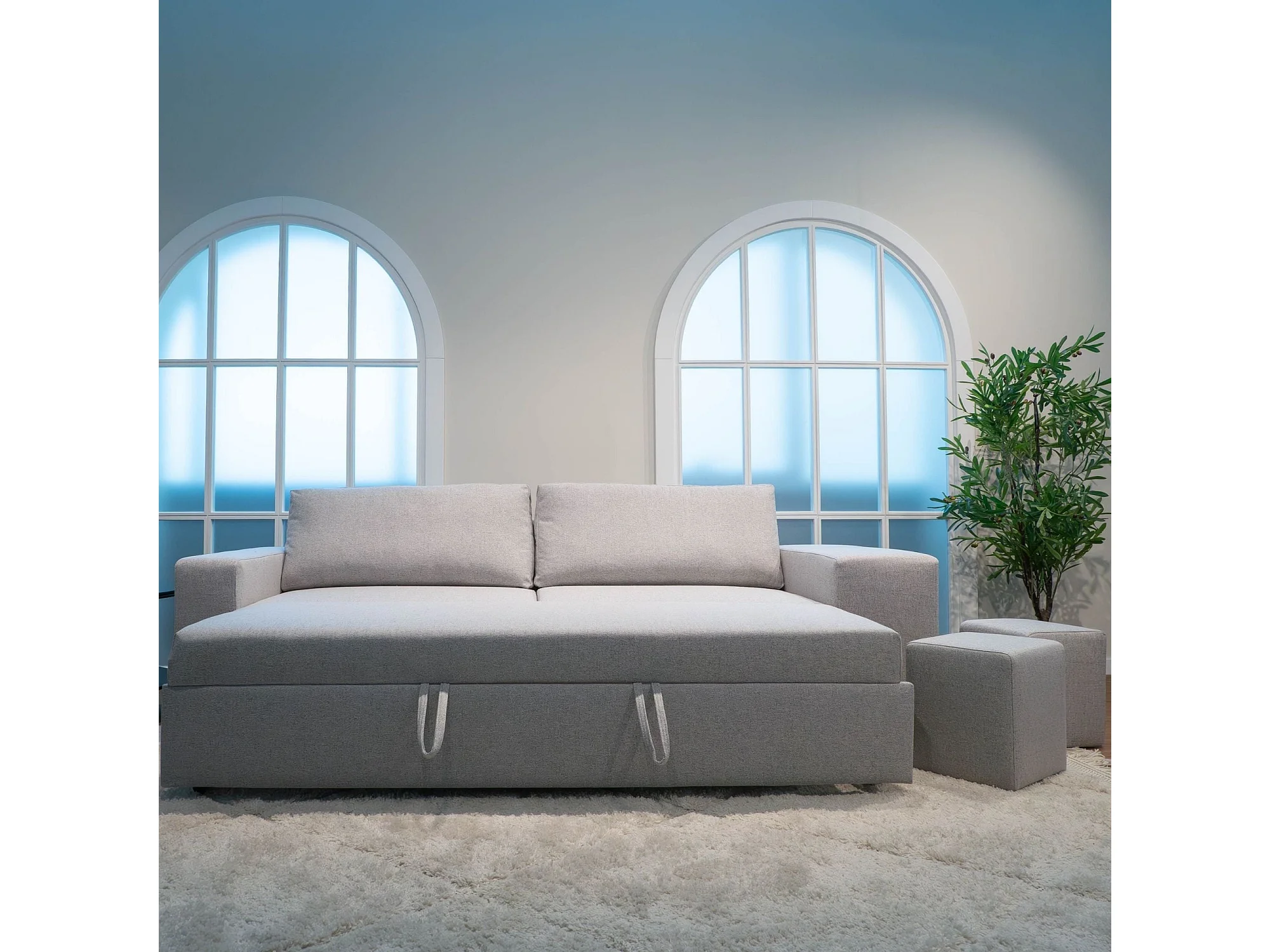 BUDWING Canapé-Lit Avery Gris avec 2 Poufs - 3 Places - 248x117x90 cm