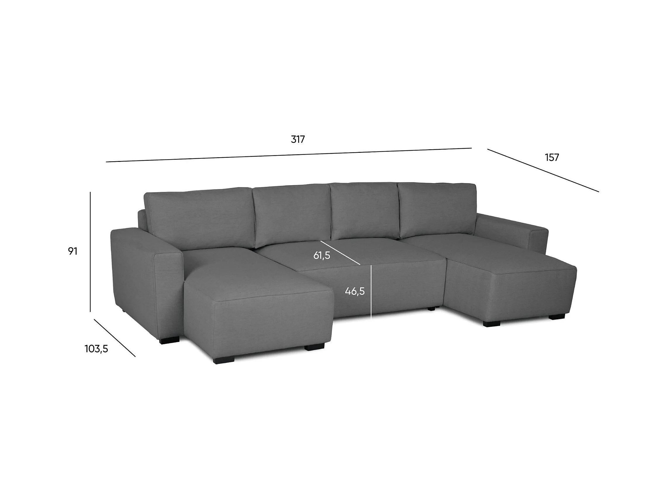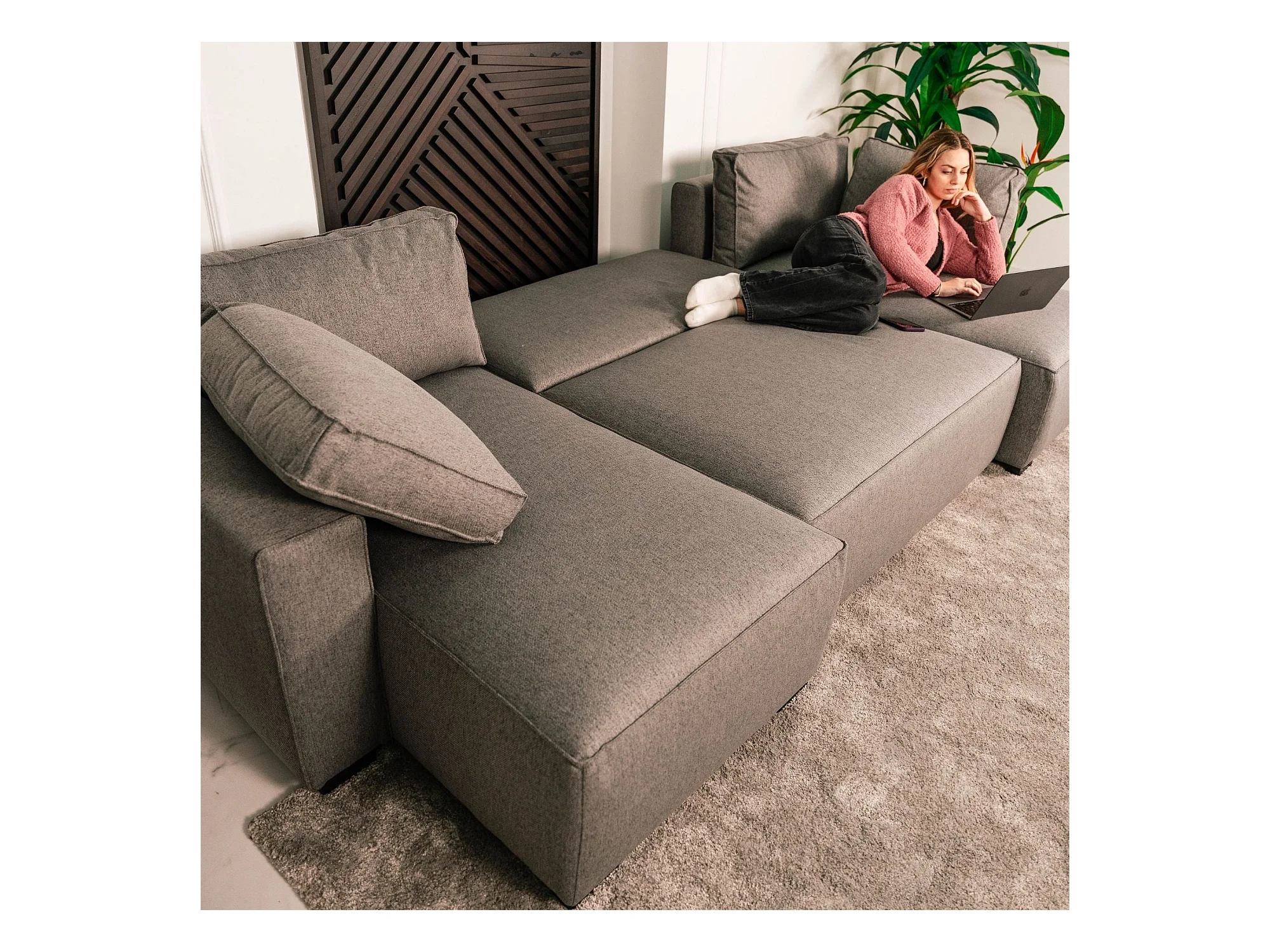 BUDWING Canapé-Lit Chaise Longue Jordan Gris - 5 Places - 317x157x91 cm