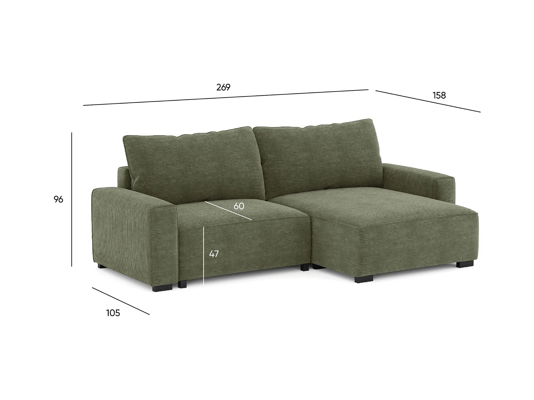 BUDWING Canapé-Lit Chaise Longue Lauren Vert Forêt - 4 Places - 269x158x96 cm