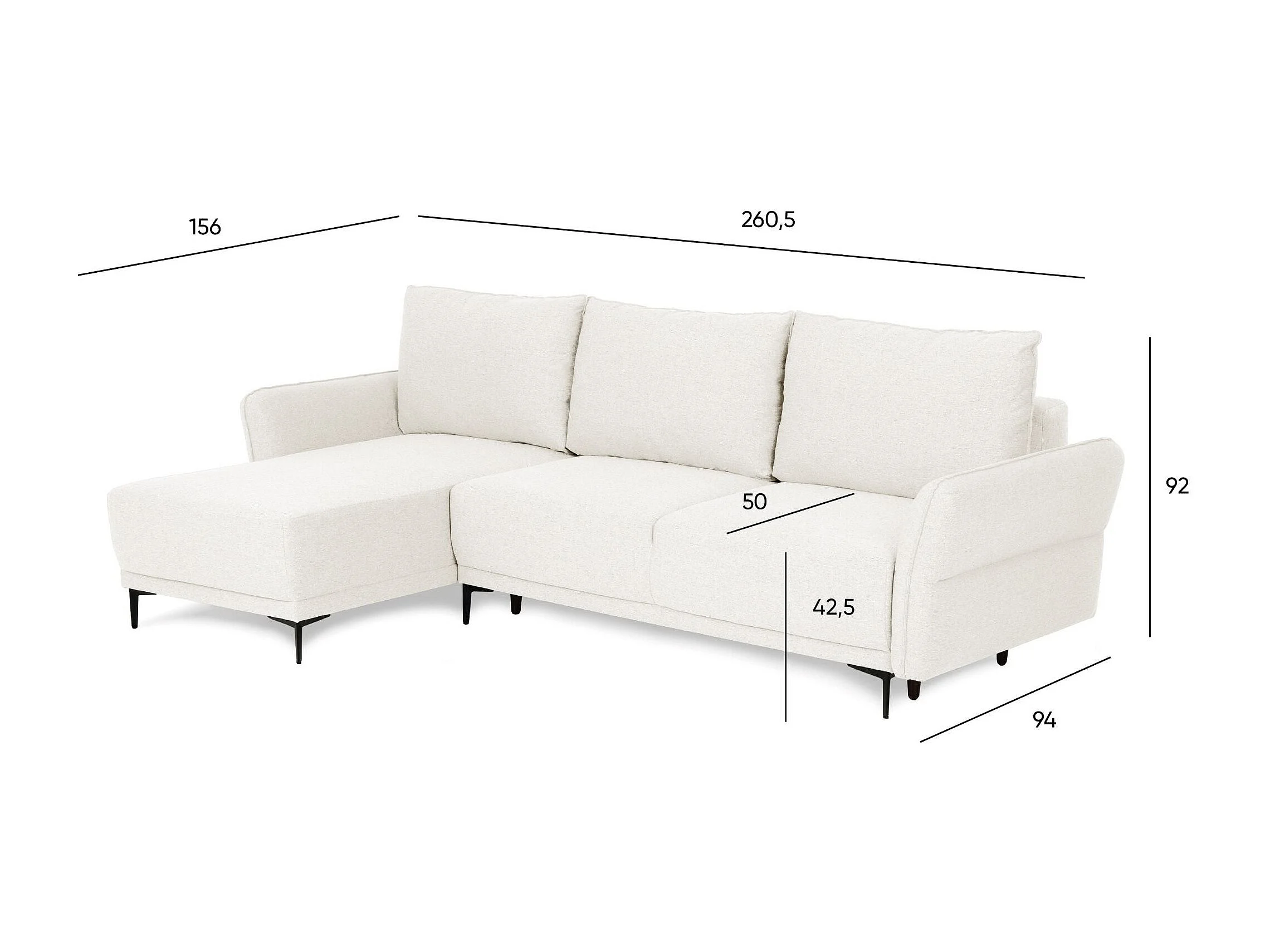 BUDWING Canapé-Lit Chaise Longue Toby Beige - 4 Places - 260,5x156x92 cm